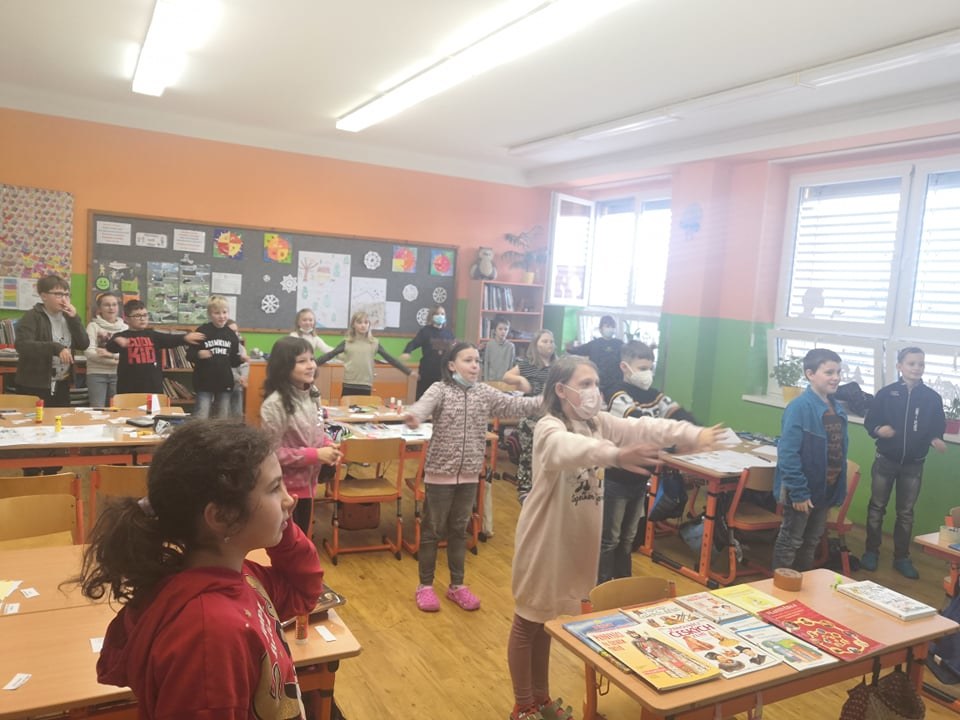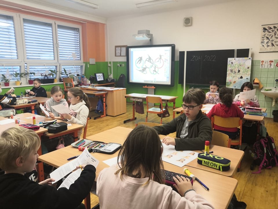 Od pondělí 7. 2. do pátku 11. 2. se konal lyžařský výcvik, žáci, kteří za lyžováním neodjeli, byli spojeni do jedné třídy. Konala se tedy společná výuka pod vedením paní učitelky Lenky Žákové. Ta si pro žáky připravila spoustu zajímavých aktivit, při kterých procvičovali své dosavadní znalosti a vzájemně mezi sebou spolupracovali. V matematice a češtině se soutěžilo v různorodých skupinkách a procvičovala se např. násobilka, slovní druhy, pády podstatných jmen aj. V dějepisu se vytvářel projekt na téma Přemyslovci a v zeměpisu se pracovalo se slepou mapou, atlasem a pracovními listy. V hudební výchově si čtvrťáci zahráli na hudební skladatele, prostřednictvím speciálního programu skládali své skladby. Ve výtvarné výchově se zabývali aktuálním tématem, jímž jsou Zimní olympijské hry v Pekingu, tvořili tak olympijské kruhy se sportovci. Když přišla únava, bylo na čase svá těla trošku rozpohybovat, tančila se zumba. Celý týden si všichni náramně užili. Bylo vidět, že žáci spolu velmi dobře vycházejí a navázali i nová přátelství.