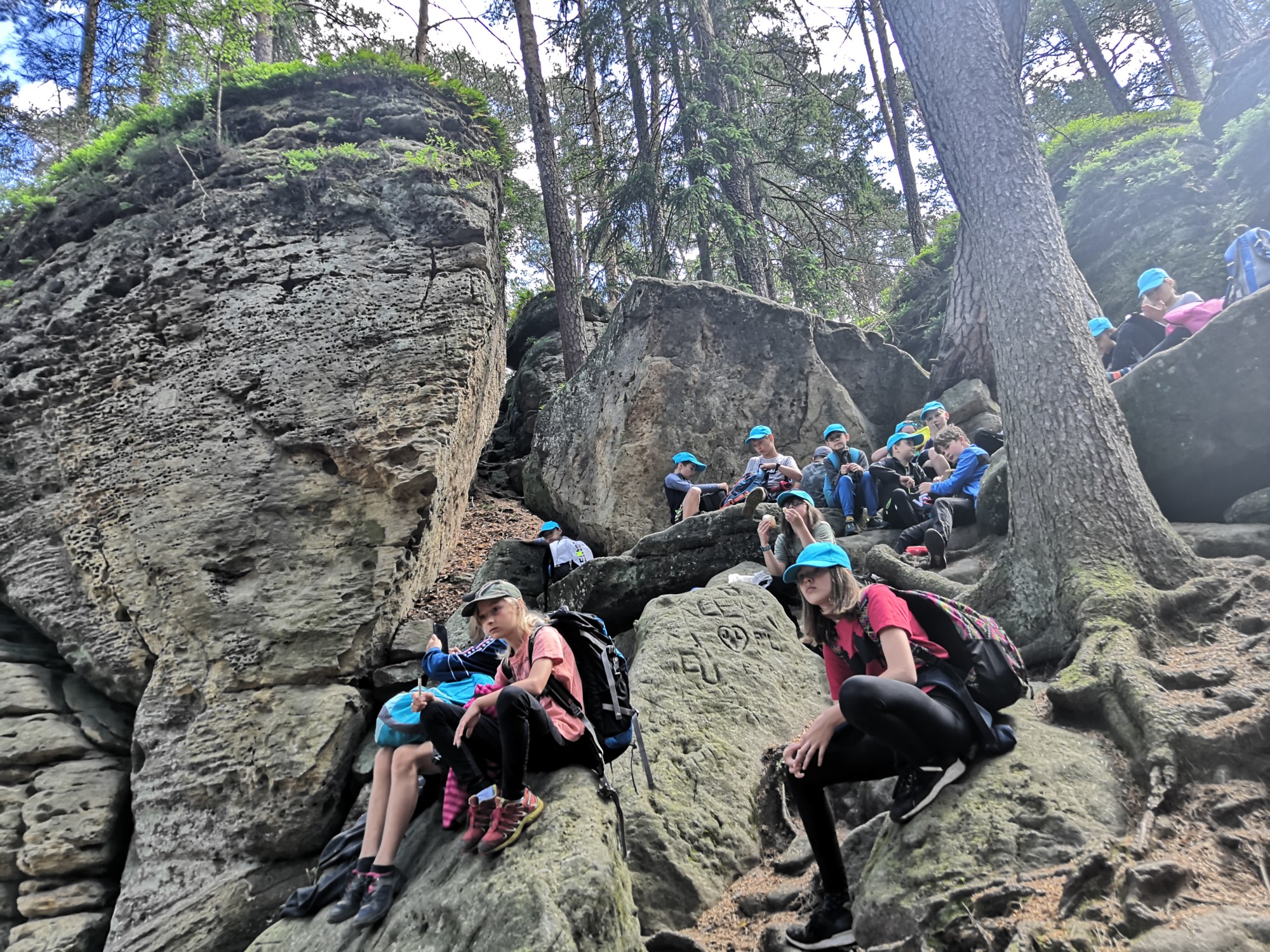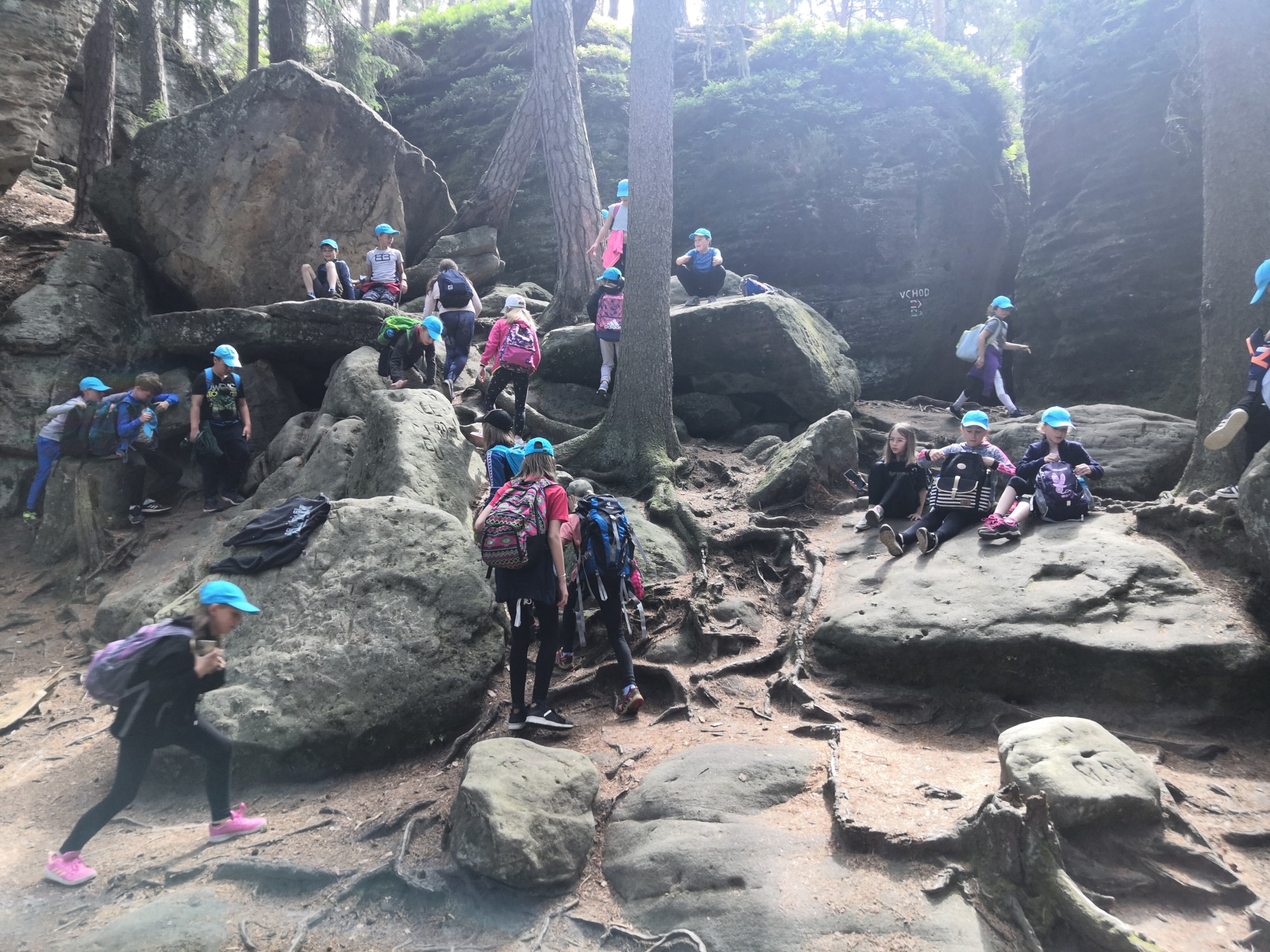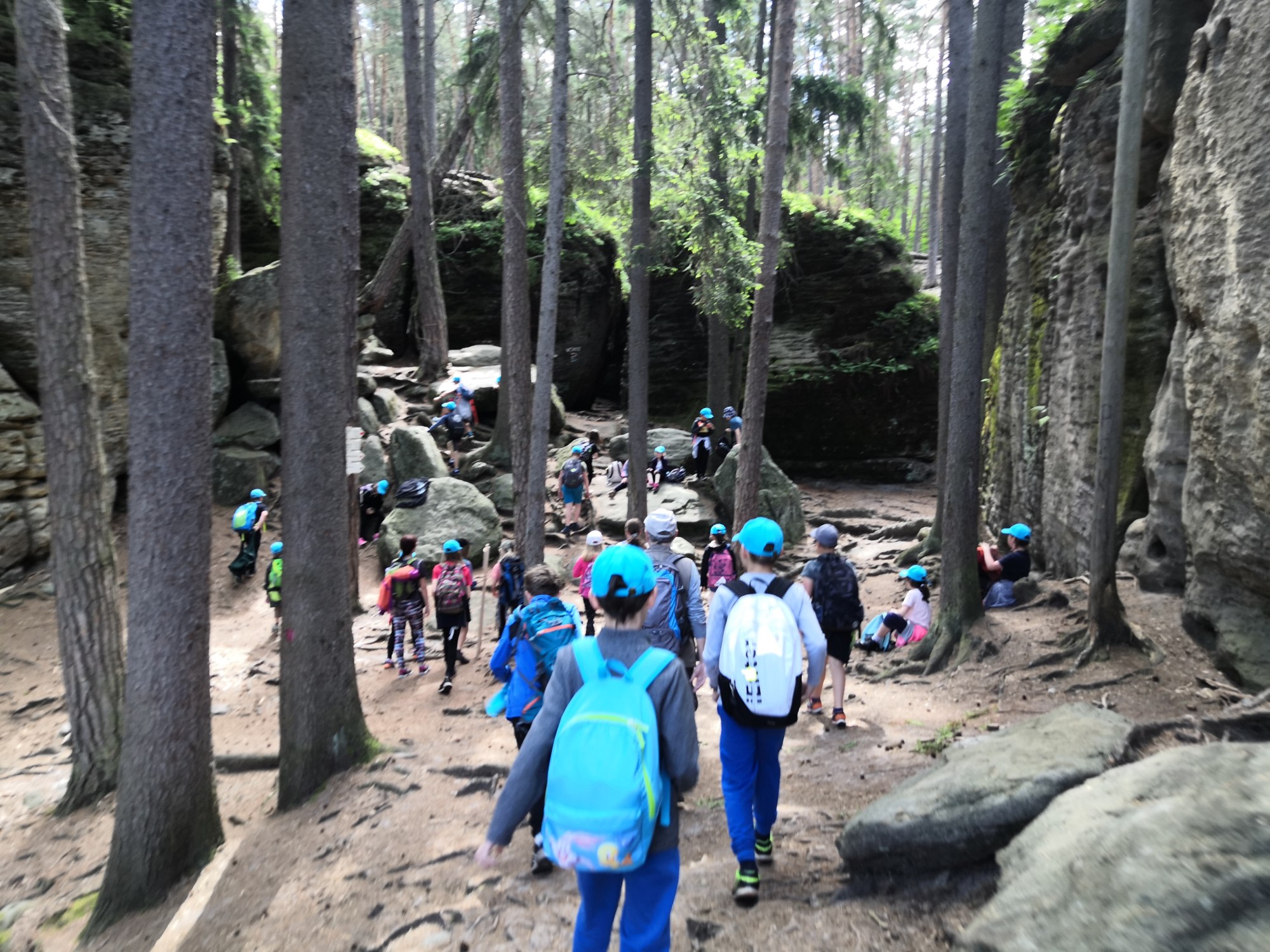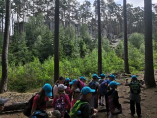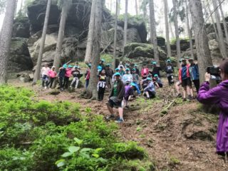 Po víkendu, 13. června, jsme třídy 4. A a 4. B vyjeli společně na turistický výlet do Boru u Skutče na Chrudimsku. Tam započalo naše desetikilometrové putování po Toulovcových Maštalích a jejich okolí. Zdolávali jsme prudké svahy, skalní útvary a jejich pukliny a dokonce i Myší díru, kterou jsme museli prolézt po čtyřech. Dostali jsme i pracovní listy, kde jsme si své postřehy a znalosti procvičovali.