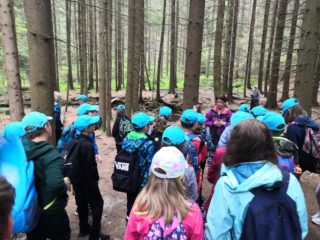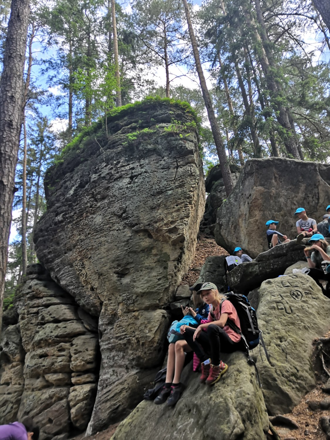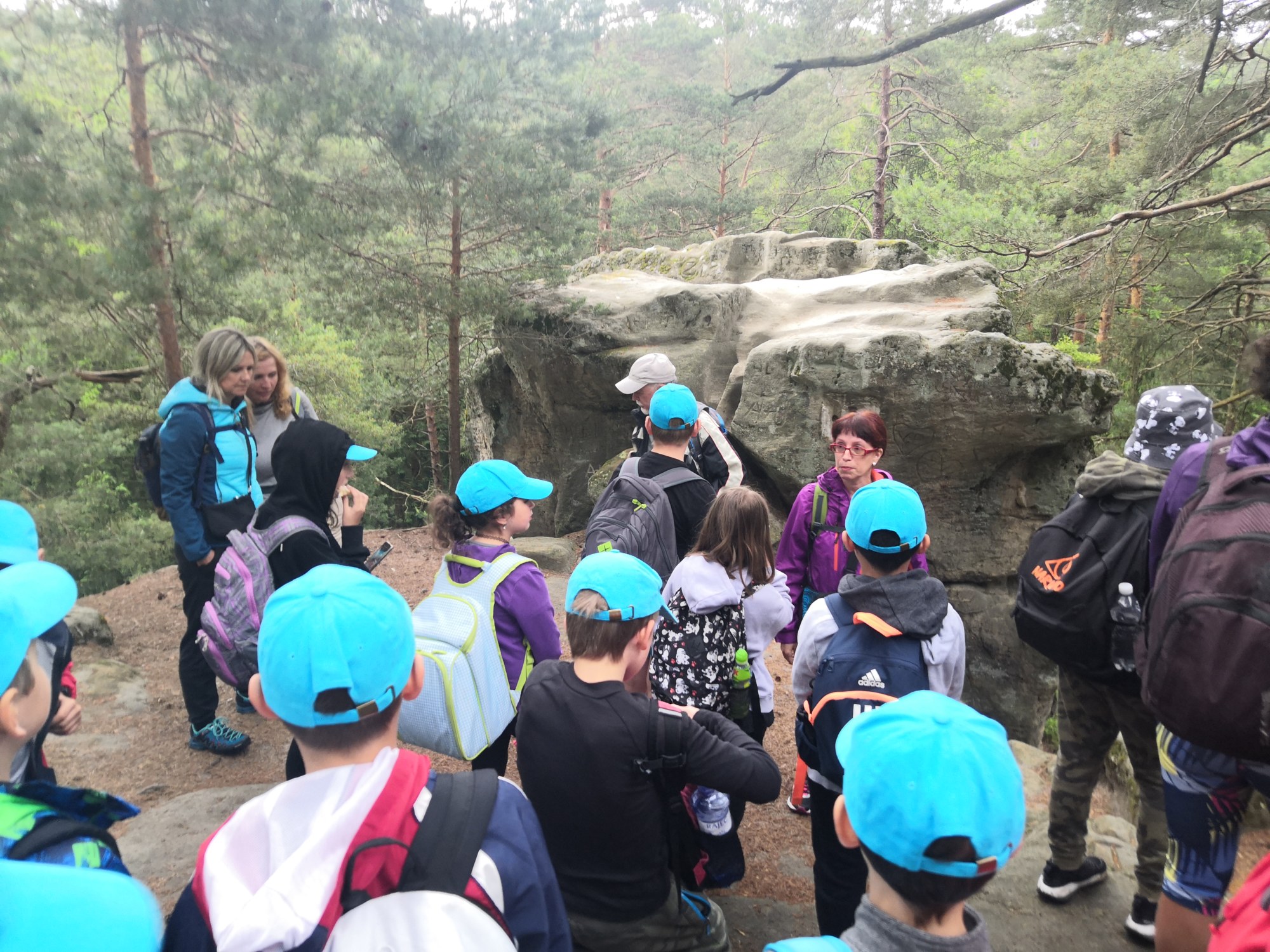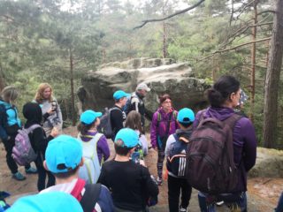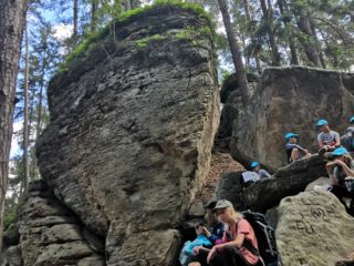 Po víkendu, 13. června, jsme třídy 4. A a 4. B vyjeli společně na turistický výlet do Boru u Skutče na Chrudimsku. Tam započalo naše desetikilometrové putování po Toulovcových Maštalích a jejich okolí. Zdolávali jsme prudké svahy, skalní útvary a jejich pukliny a dokonce i Myší díru, kterou jsme museli prolézt po čtyřech. Dostali jsme i pracovní listy, kde jsme si své postřehy a znalosti procvičovali.