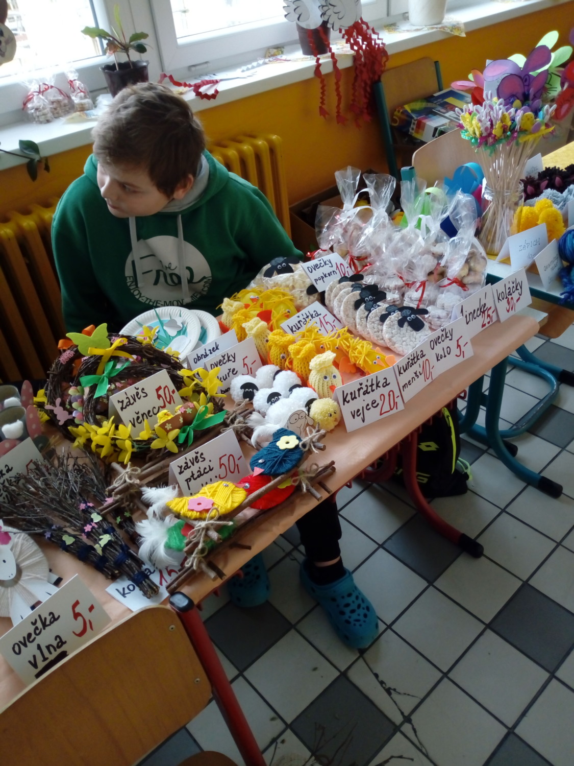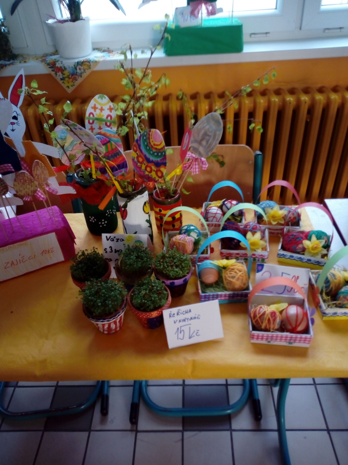 Již potřetí se na naší škole konal jarmark zaměřený na jaro a velikonoční svátky. Děti od ledna vyráběly výrobky na prodej z keramiky, přírodnin, papíru, pekly s maminkami i paní učitelkou, také rodiče se letos hojně zapojili. Takže ve stáncích se objevovaly koláčky, muffiny, dortíky a spousta cukroví a perníčků. Páté třídy nacvičily kulturní program. V kuchyňce byla opět k dispozici káva, čaj a jiné nápoje, ale hlavně dobroty od dětí a učitelů. Jarmark se jako každý rok vydařil.