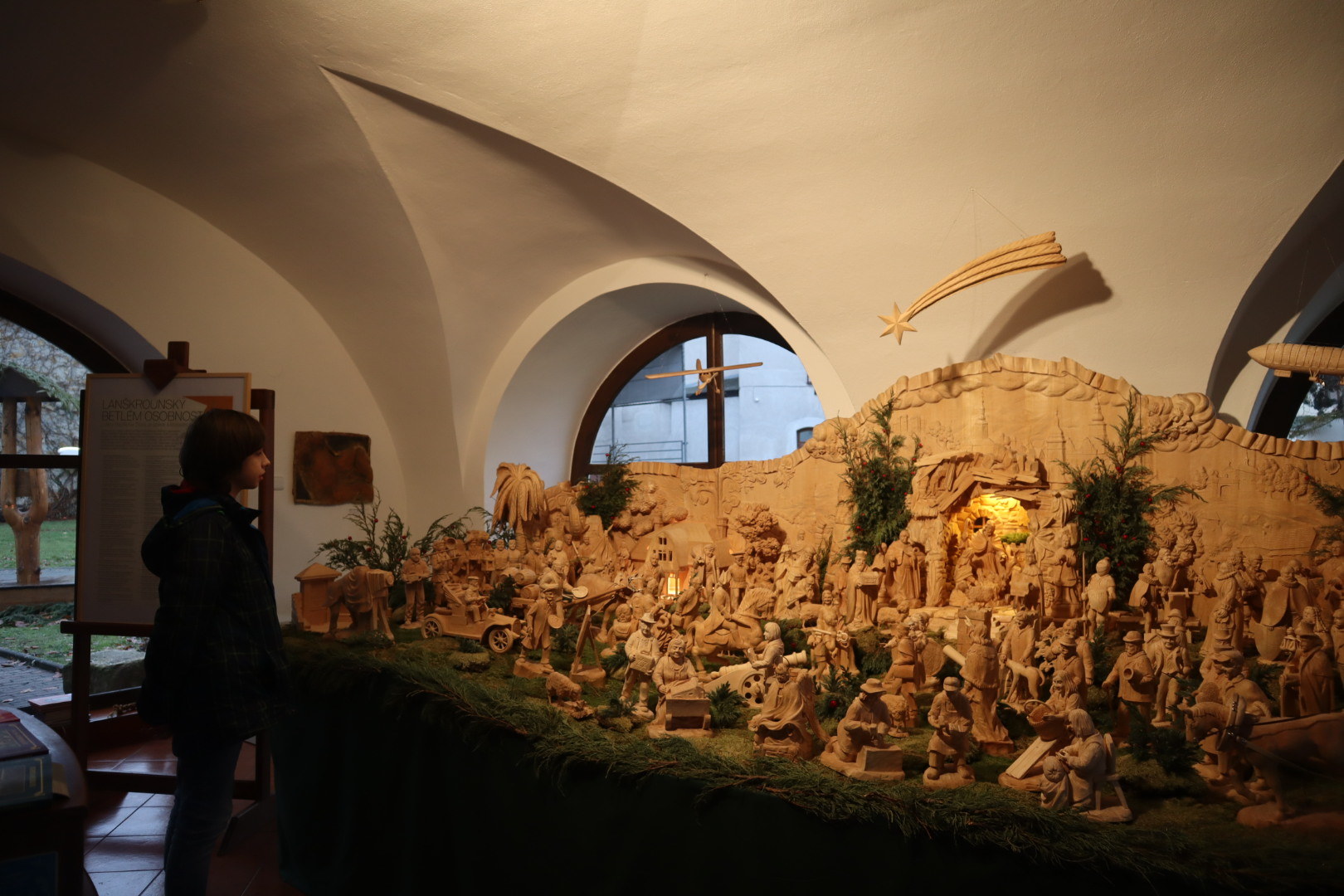 Třídy 8. A, 8. B a členové historického klubu naší školy navštívili v předvánočním období v úterý 27. a ve středu 28. prosince 2023 v rámci výuky dějepisu Městské muzeum v Lanškrouně. Prohlédli si zajímavou výstavu malíře Jiřího Křiklavy a uměleckého kováře Františka Antonína Bečky. Rozměrné barevné obrazy J. Křiklavy upoutaly žáky na první pohled. Kované plastiky F. A. Bečky příjemně doplnily výstavní síň. Po prohlídce této výstavy v hlavní zámecké budově následovala prohlídka vánočních betlémů. Zejména nás zaujal tradiční Lanškrounský betlém osobností z lipového dřeva, jehož autorem je řezbář Bedřich Šilar a dále poutavý Hřebečský betlém Jarmily Haldové, situovaný do kulis historických budov Lanškrouna. Všichni výtvarníci, jejichž díla jsme si prohlédli, pocházejí z našeho regionu.
