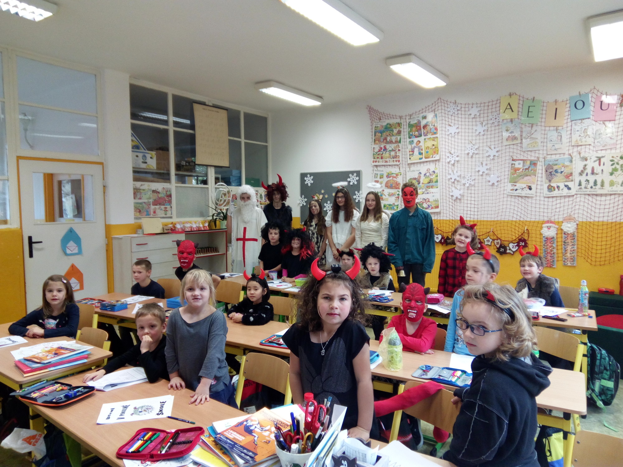 Dnešní výuka se nesla v duch příchodu Mikuláše, Anděla a Čerta. Všchny děti byly napjaté, zda k nám dorazí s nadílkou nebo ne.