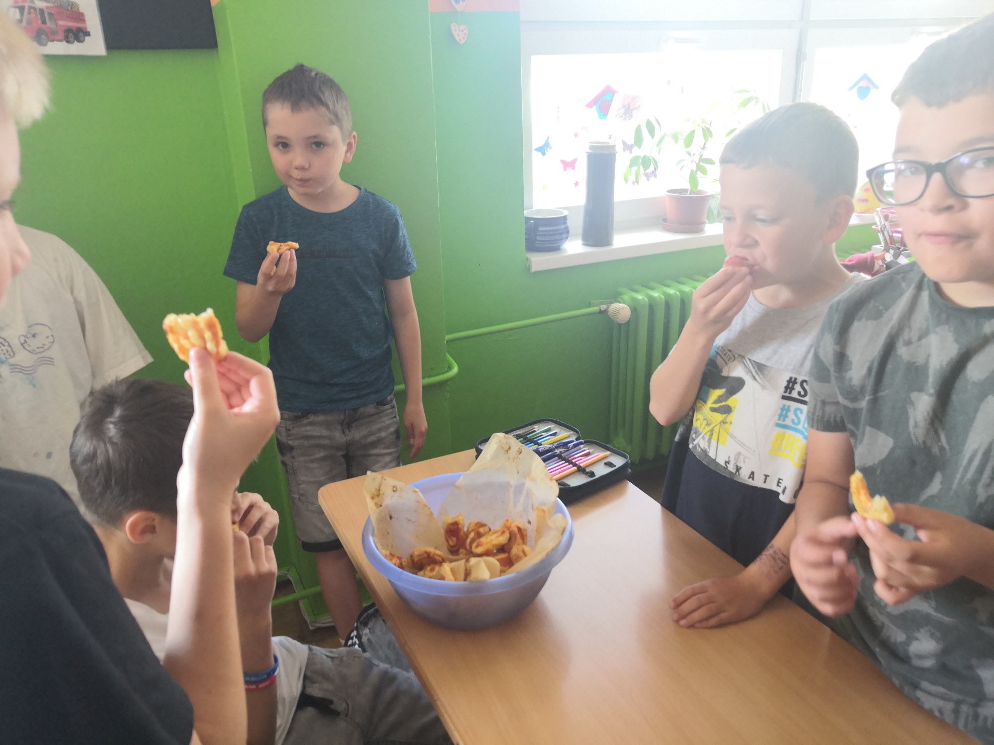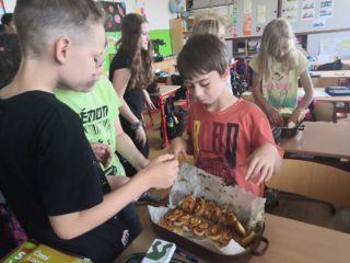Ve čtvrtek 2. 6. 2022 jsme v hodině pracovních činností vyrazili do školní kuchyňky, rozdělili se do skupinek a v nich jsme upekli Pizza šneky. Den předtím jsme si společně sepsali recept s pracovním postupem a rozdělili si, kdo jaké suroviny přinese. Dílo se nám velmi povedlo a o velké přestávce jsme si na této dobrotě pochutnali.