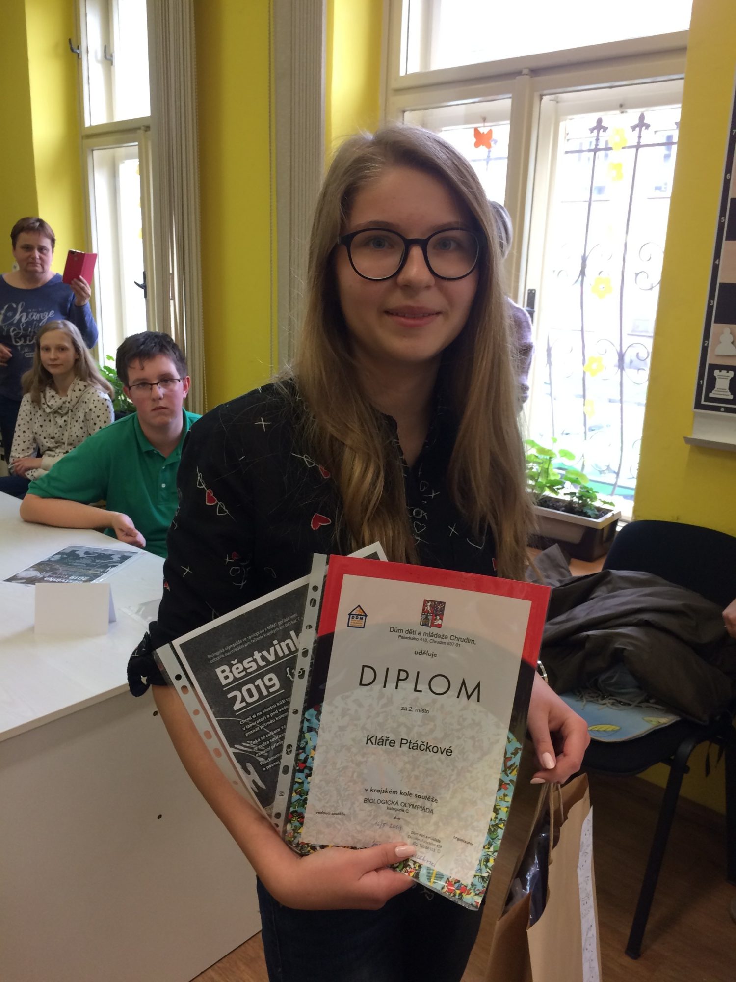 V letošním roce zaznamenaly žákyně naší školy výrazné úspěchy v Biologické olympiádě. V okresním kole obsadily žákyně 9.A Klára Ptáčková 2.místo a Nikola Ptáčková 6.místo. Obě se staly úspěšnými řešiteli této soutěže. Klára postoupila do krajského kola, které se konalo 16. 5. v Chrudimi. Ve velmi silné konkurenci obsadila v kraji 2.místo. Děkujeme za reprezentaci školy a moc blahopřejeme. Za vyučující přírodopisu Eva Šuláková