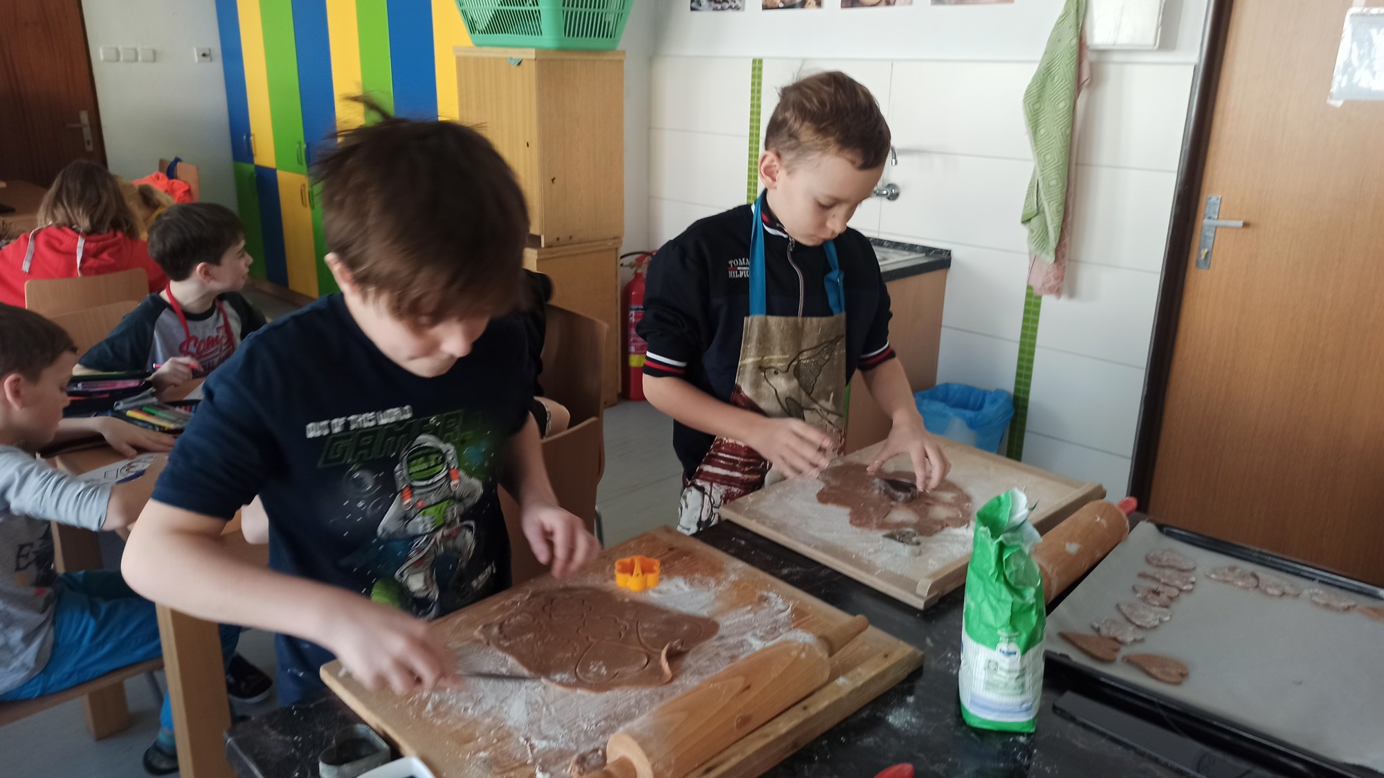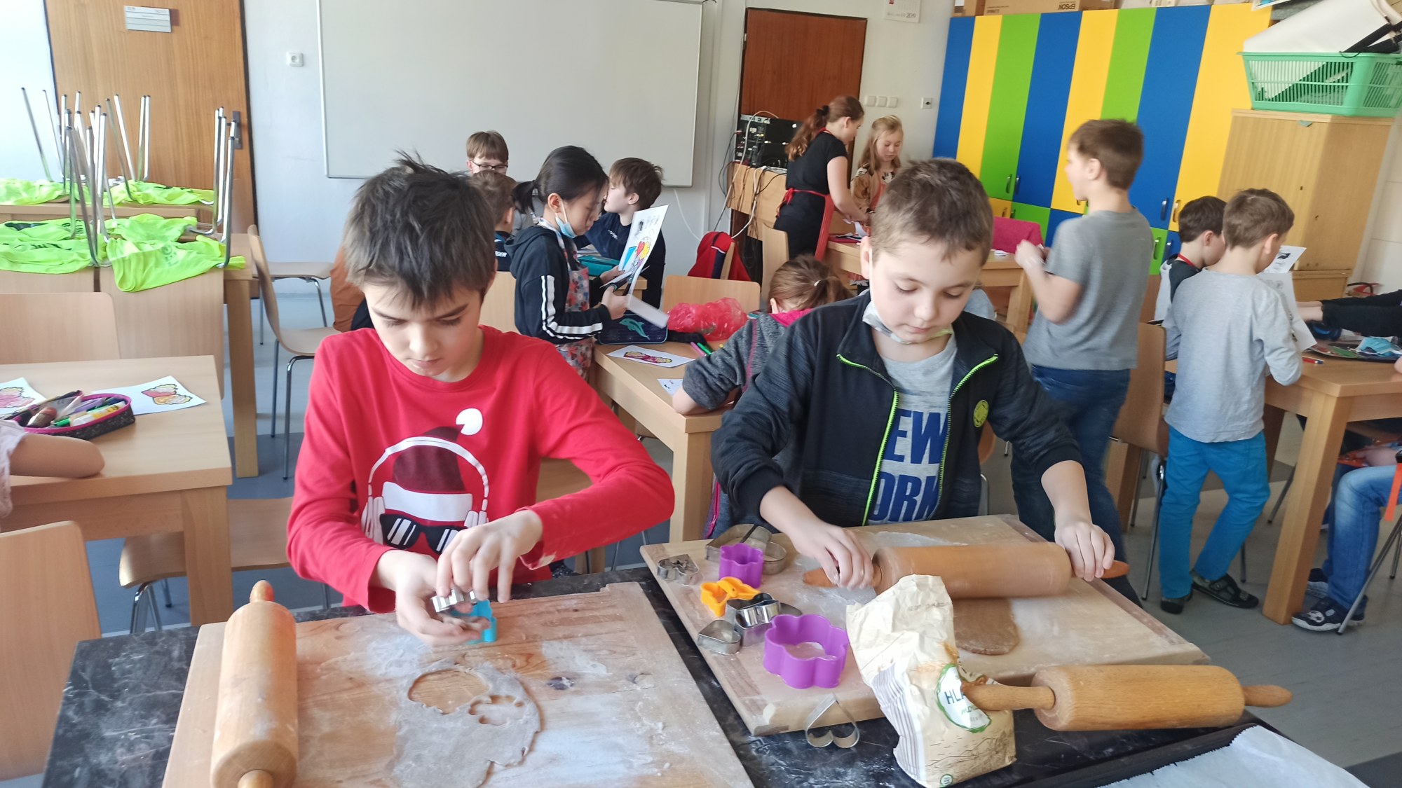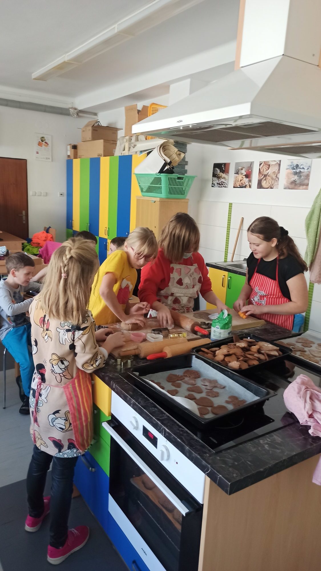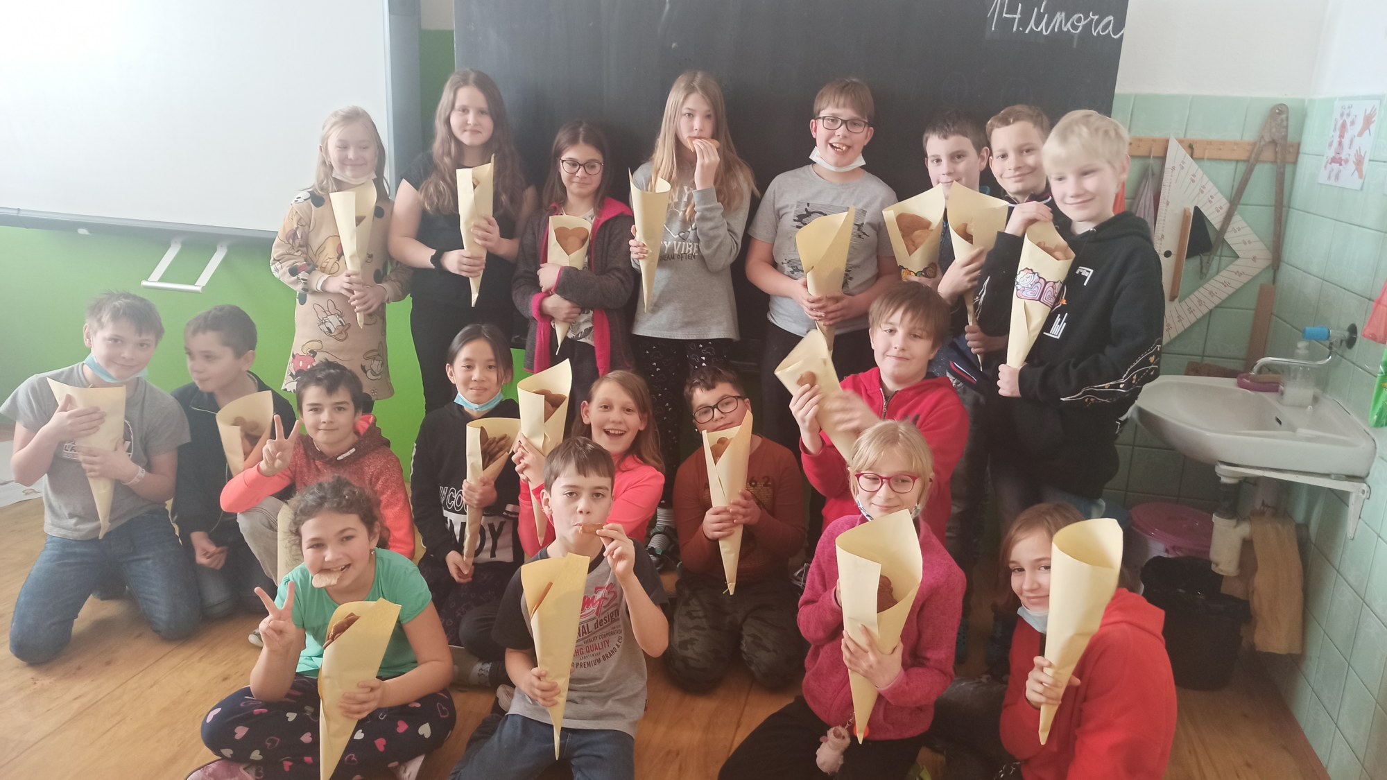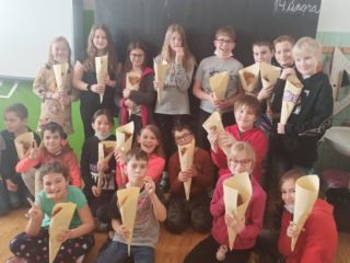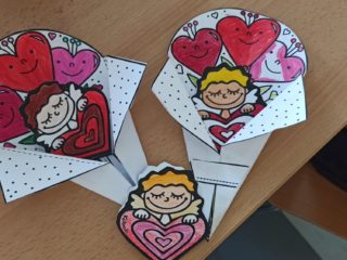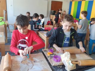 Všichni máme doma milované členy rodiny a pro ně jsme dnes 14.2. pekli valentýnské perníčky. Maminky byly tak hodné, že nám připravily těsta, a tak to šlo jako po másle. Vyválet placku, vykrojit srdíčko a když se naplnil plech, dát upéct. V mezičase stihly děti vybarvit drobnou kytičku pro maminky. Naše pečení zavonělo po celé škole. Když bylo hotovo, naplnily si děti papírové kornouty a odnesly si sladké překvapení domů. Snad udělalo radost.