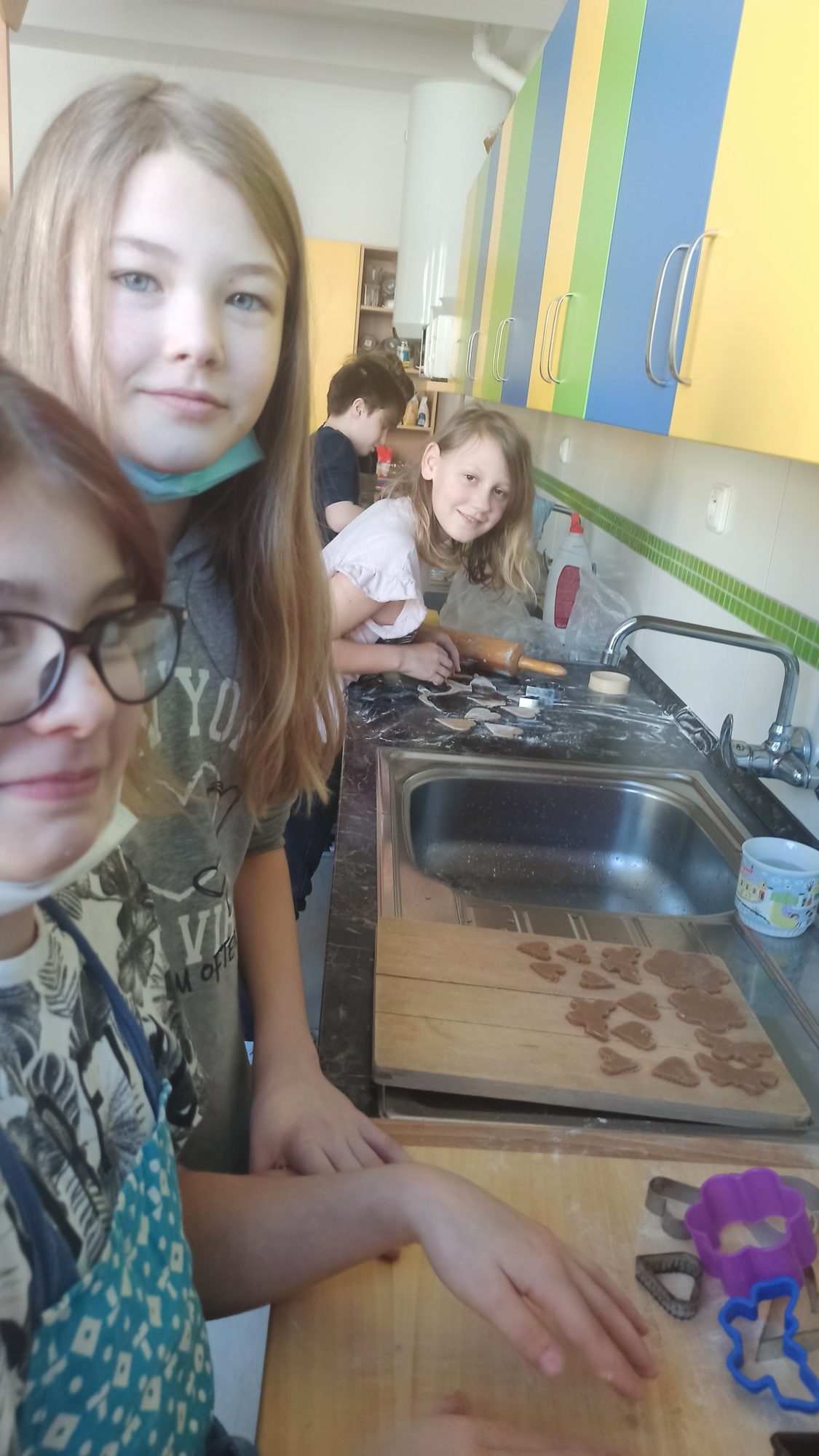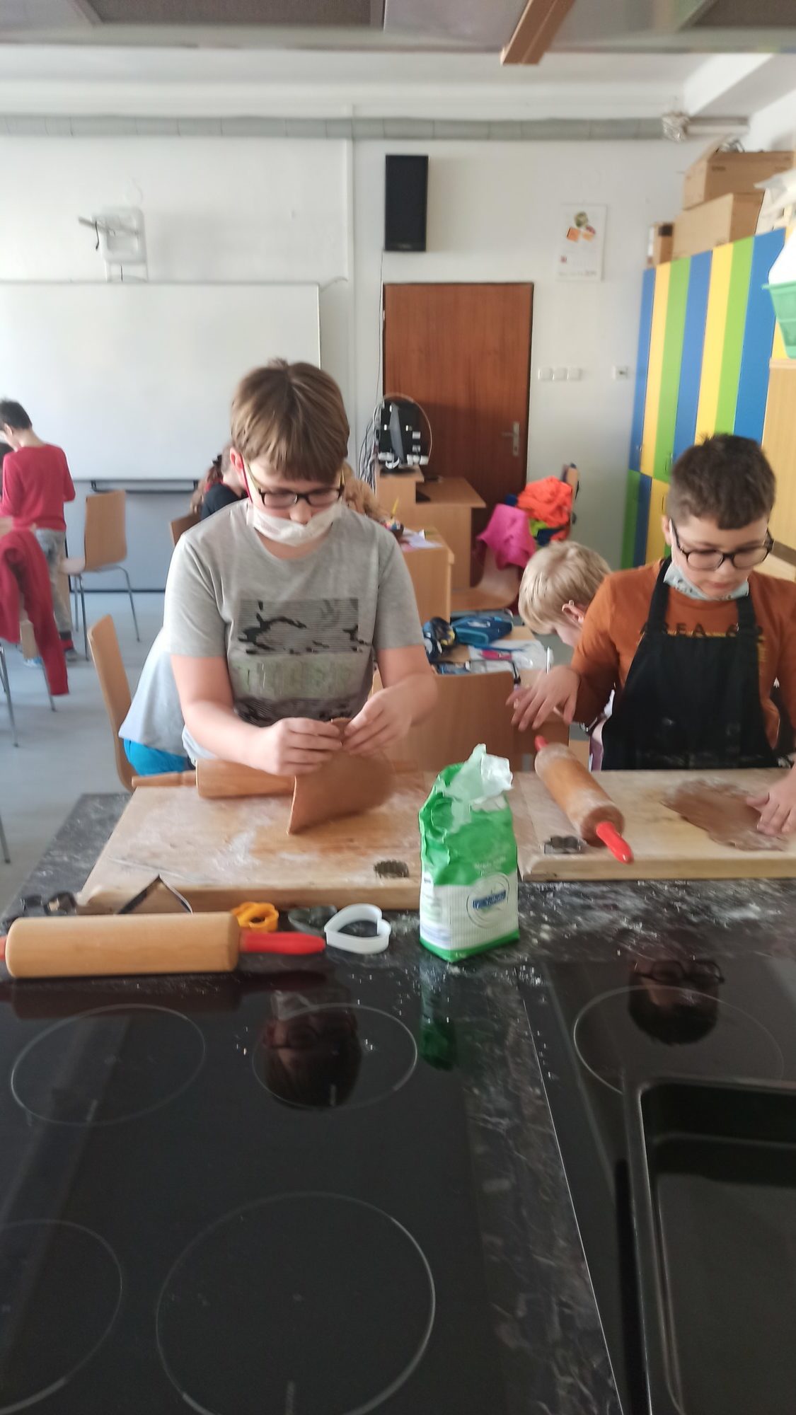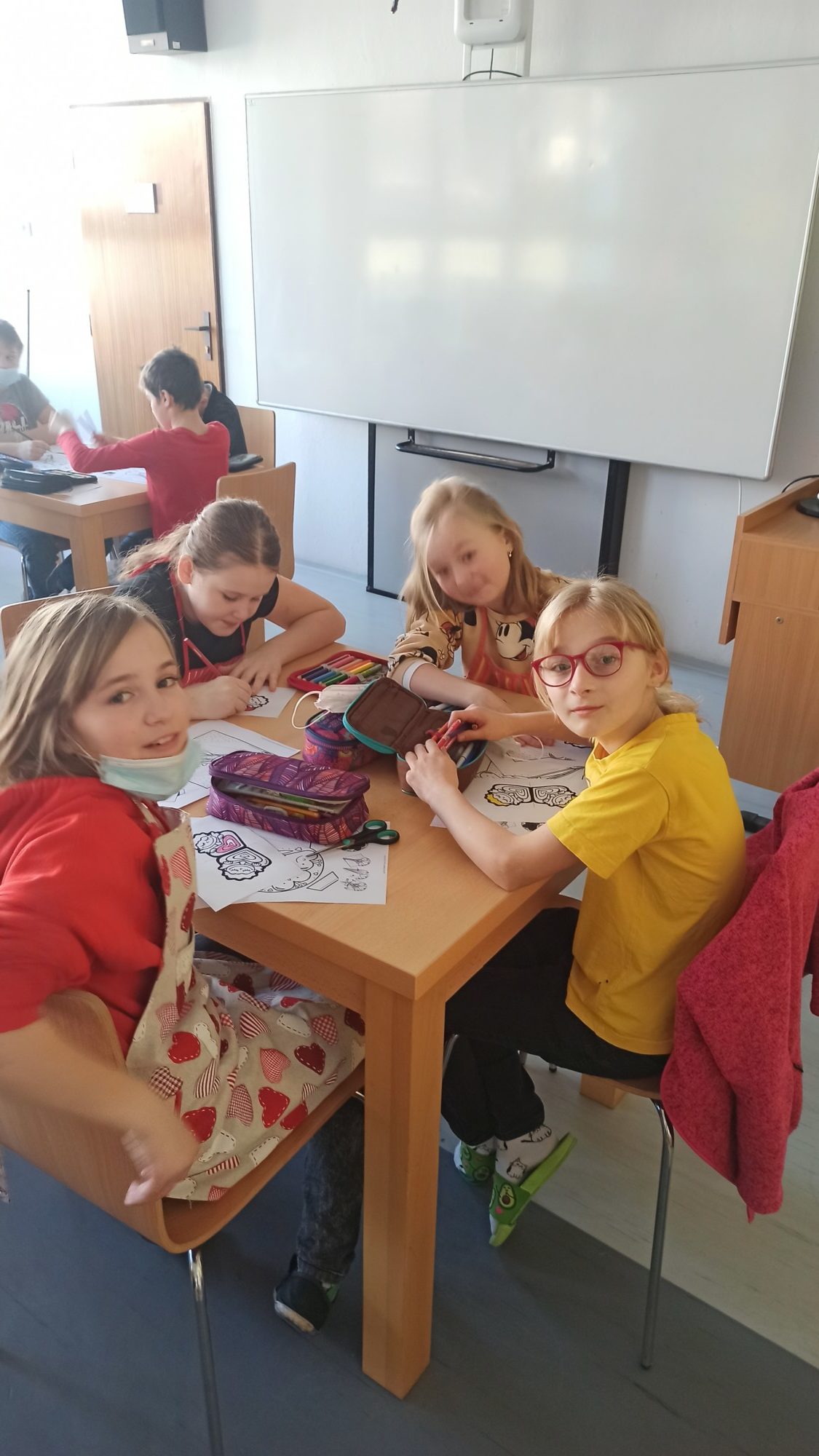 Všichni máme doma milované členy rodiny a pro ně jsme dnes 14.2. pekli valentýnské perníčky. Maminky byly tak hodné, že nám připravily těsta, a tak to šlo jako po másle. Vyválet placku, vykrojit srdíčko a když se naplnil plech, dát upéct. V mezičase stihly děti vybarvit drobnou kytičku pro maminky. Naše pečení zavonělo po celé škole. Když bylo hotovo, naplnily si děti papírové kornouty a odnesly si sladké překvapení domů. Snad udělalo radost.
