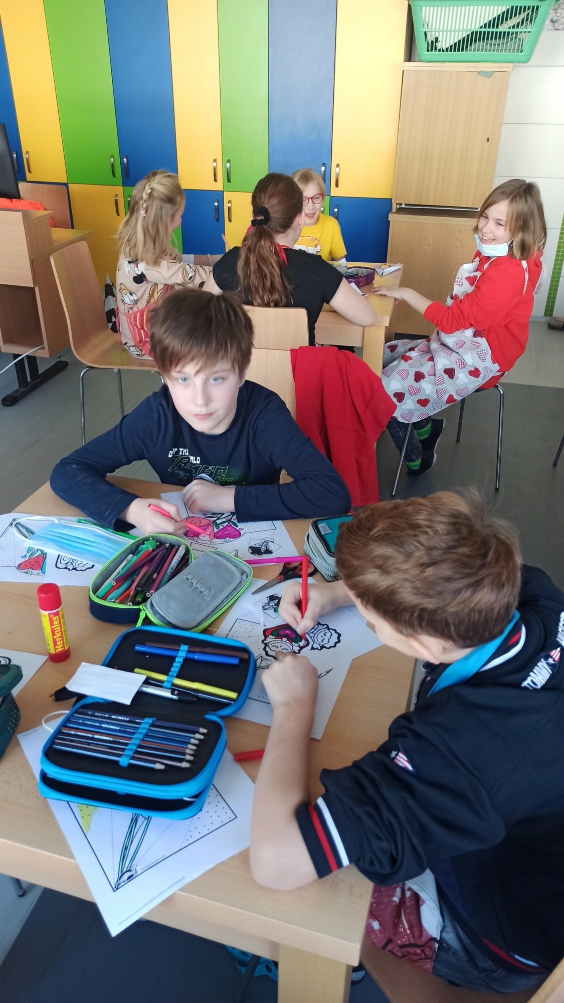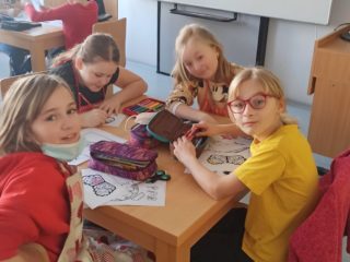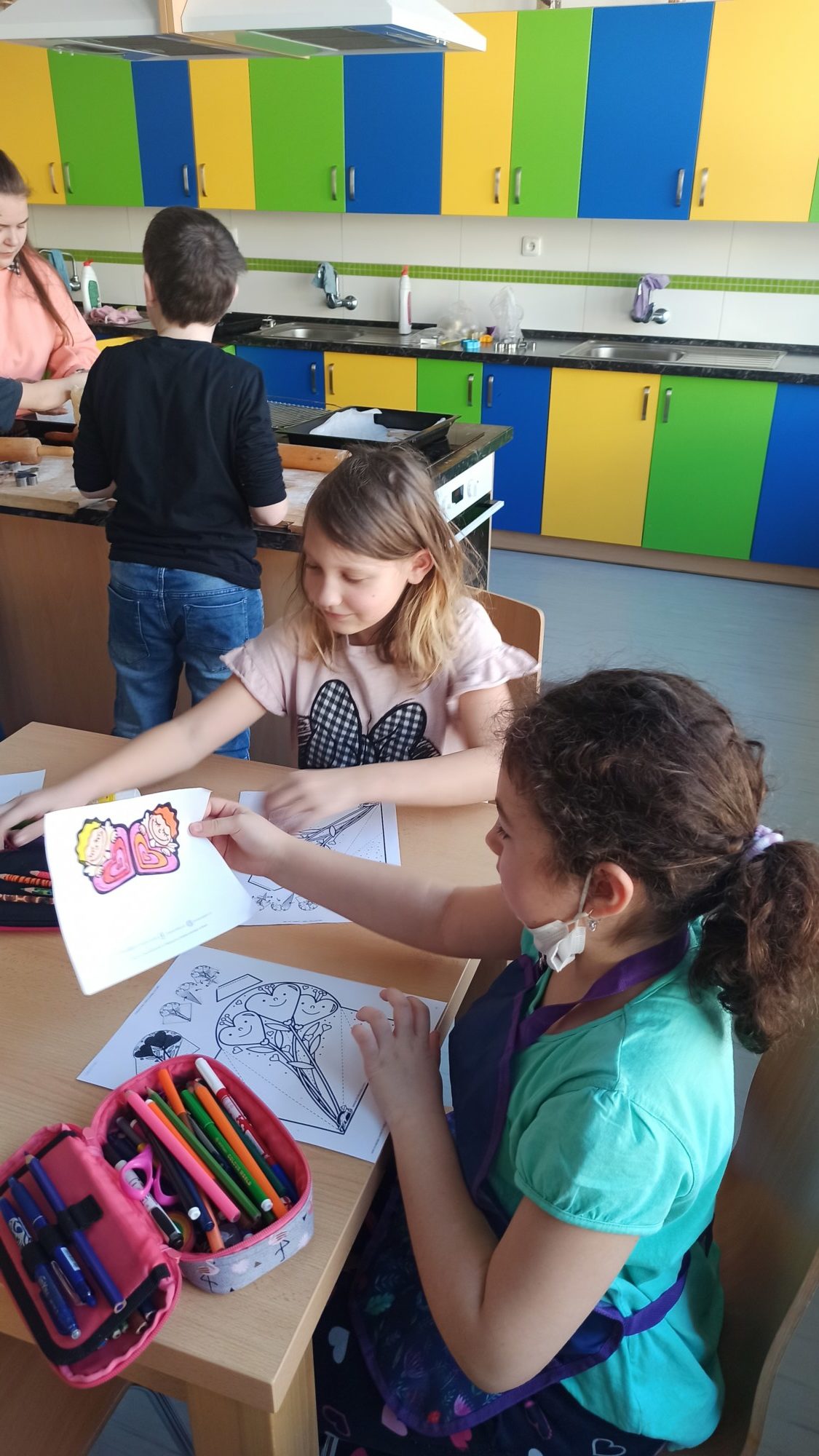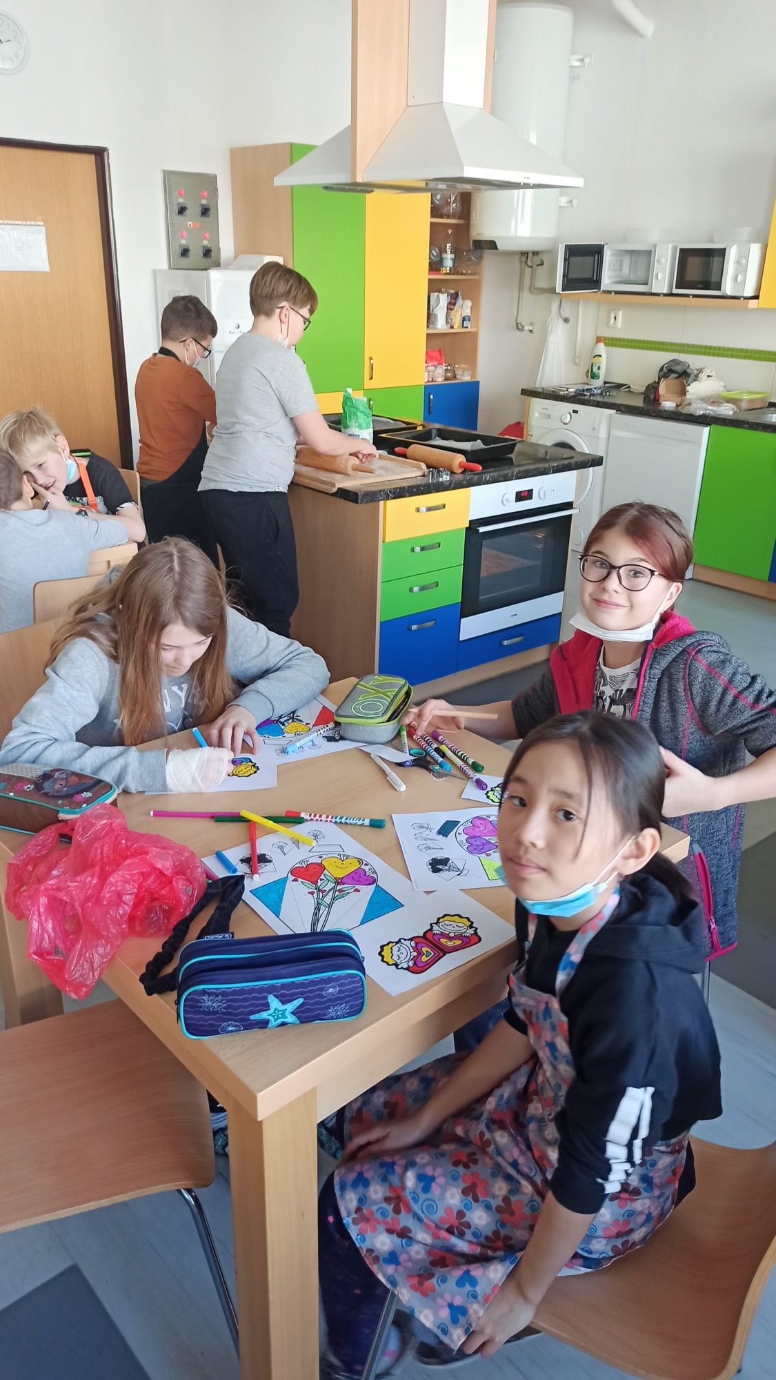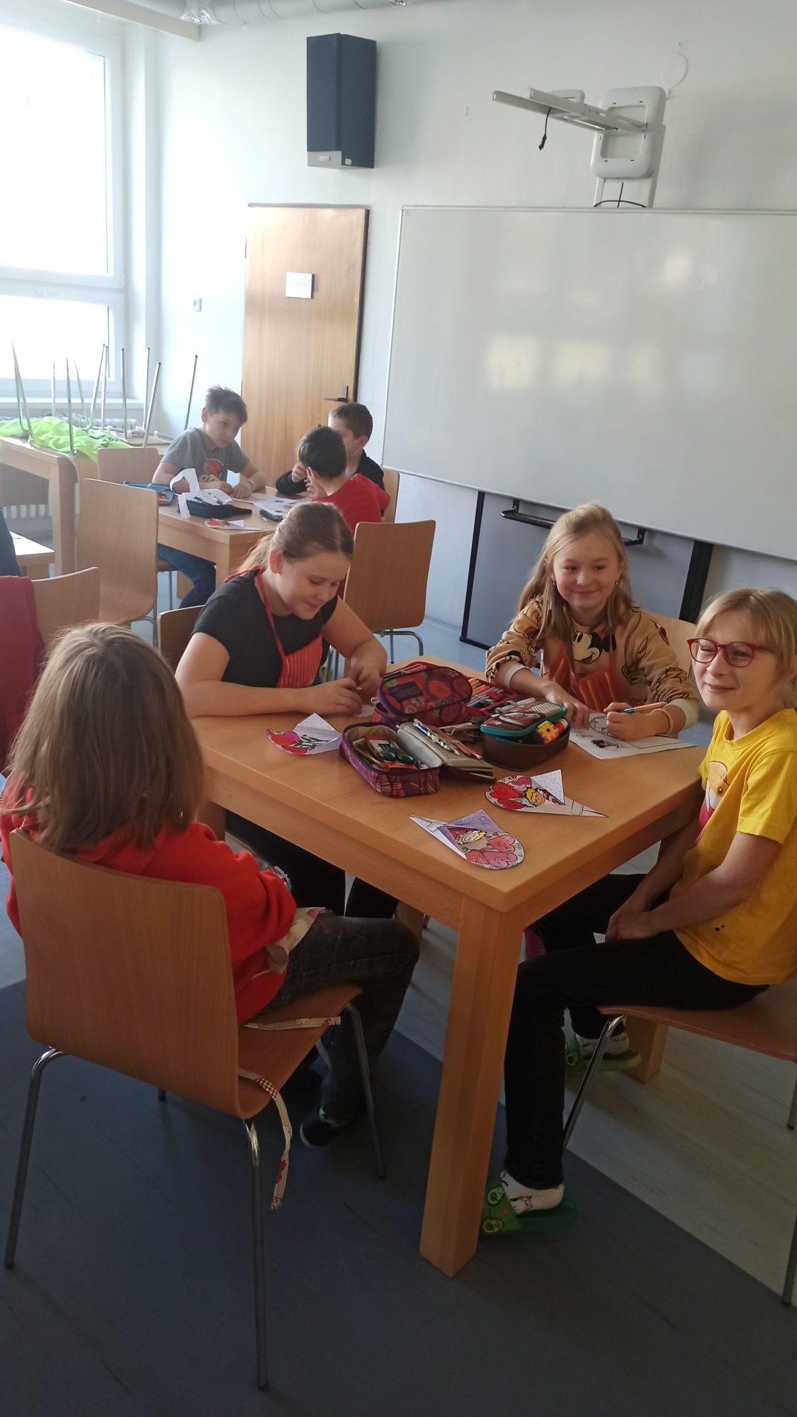 Všichni máme doma milované členy rodiny a pro ně jsme dnes 14.2. pekli valentýnské perníčky. Maminky byly tak hodné, že nám připravily těsta, a tak to šlo jako po másle. Vyválet placku, vykrojit srdíčko a když se naplnil plech, dát upéct. V mezičase stihly děti vybarvit drobnou kytičku pro maminky. Naše pečení zavonělo po celé škole. Když bylo hotovo, naplnily si děti papírové kornouty a odnesly si sladké překvapení domů. Snad udělalo radost.