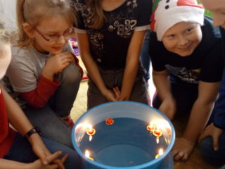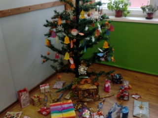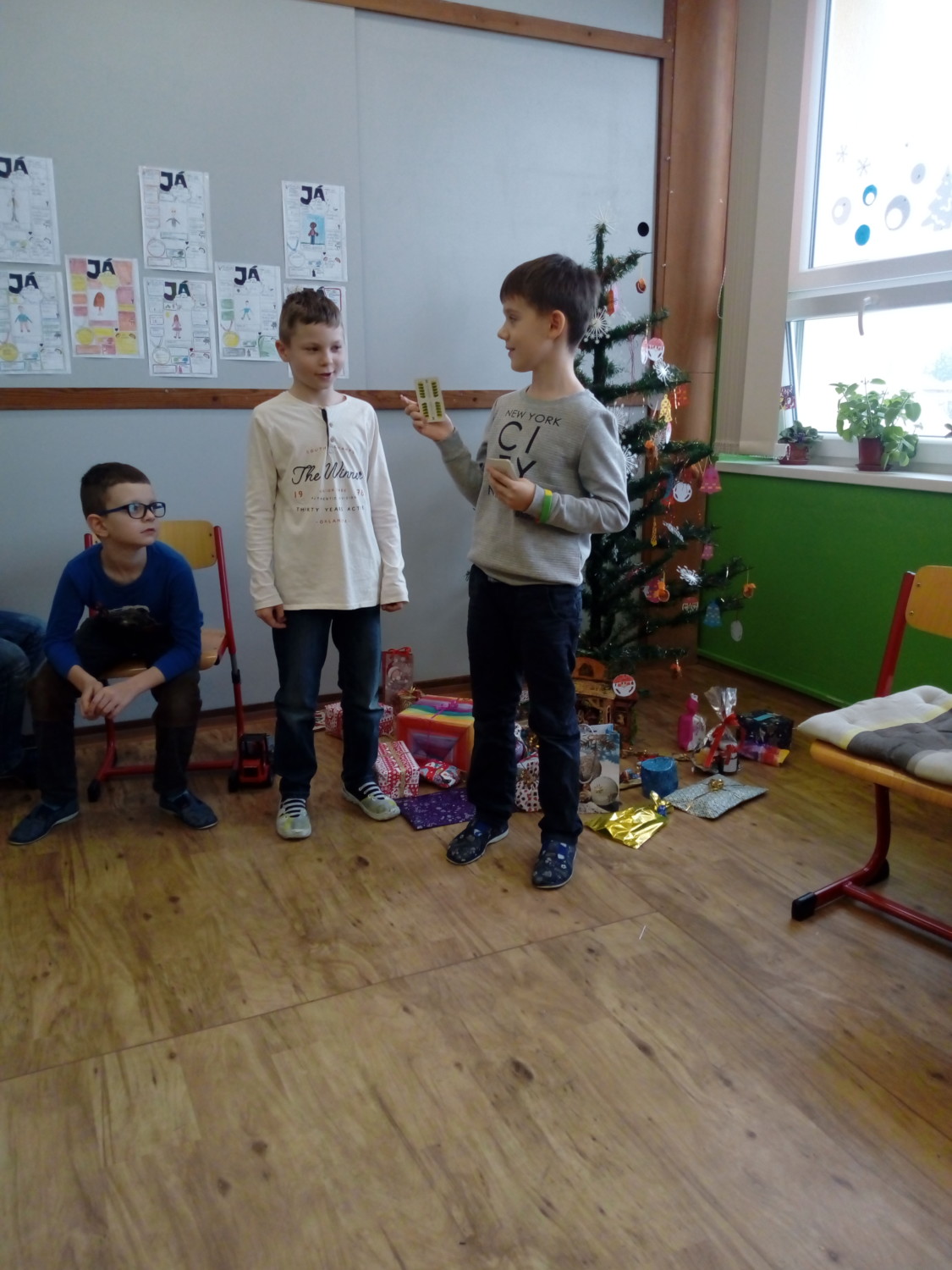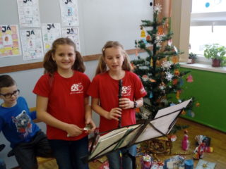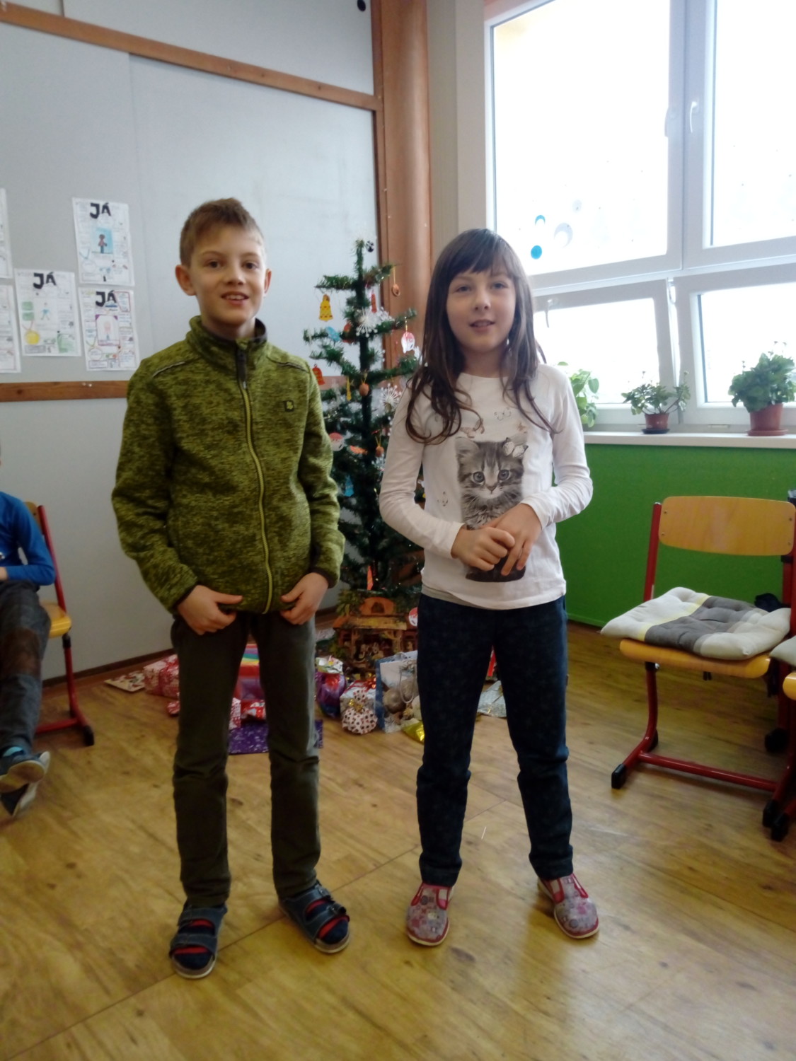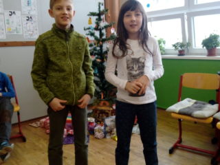 Adventní čekání na Vánoce si děti krátily ve škole mnoha činnostmi. Vyráběly papírové zvonky, vyšívaly vánoční přání, malovaly svícen na sklenici, ze šišek vyráběly stromeček, z jablíčka nebo pomeranče zase ozdoby. Celou školu provoněly při pečení perníčků, zpívaly koledy, četly si o vánočních zvycích a poznaly i Rybovu mši vánoční. Nejvíce si užily poslední den ve škole. Při skupinové práci se dozvěděly něco o jmelí, vyzkoušely si pouštění lodiček ze skořápek. Nejvíce se ale těšily na rozbalování dárků. Krásné Vánoce všem!