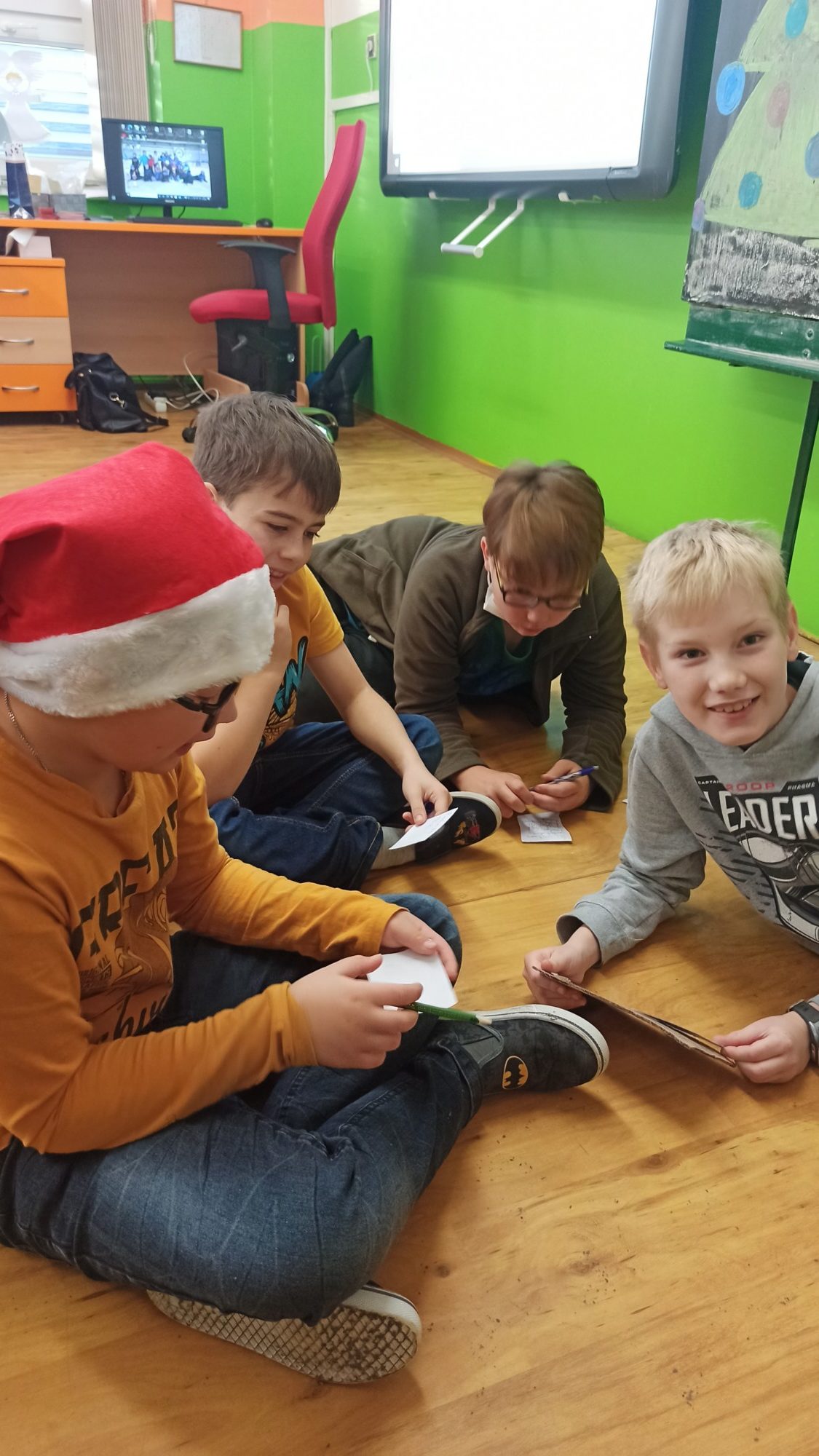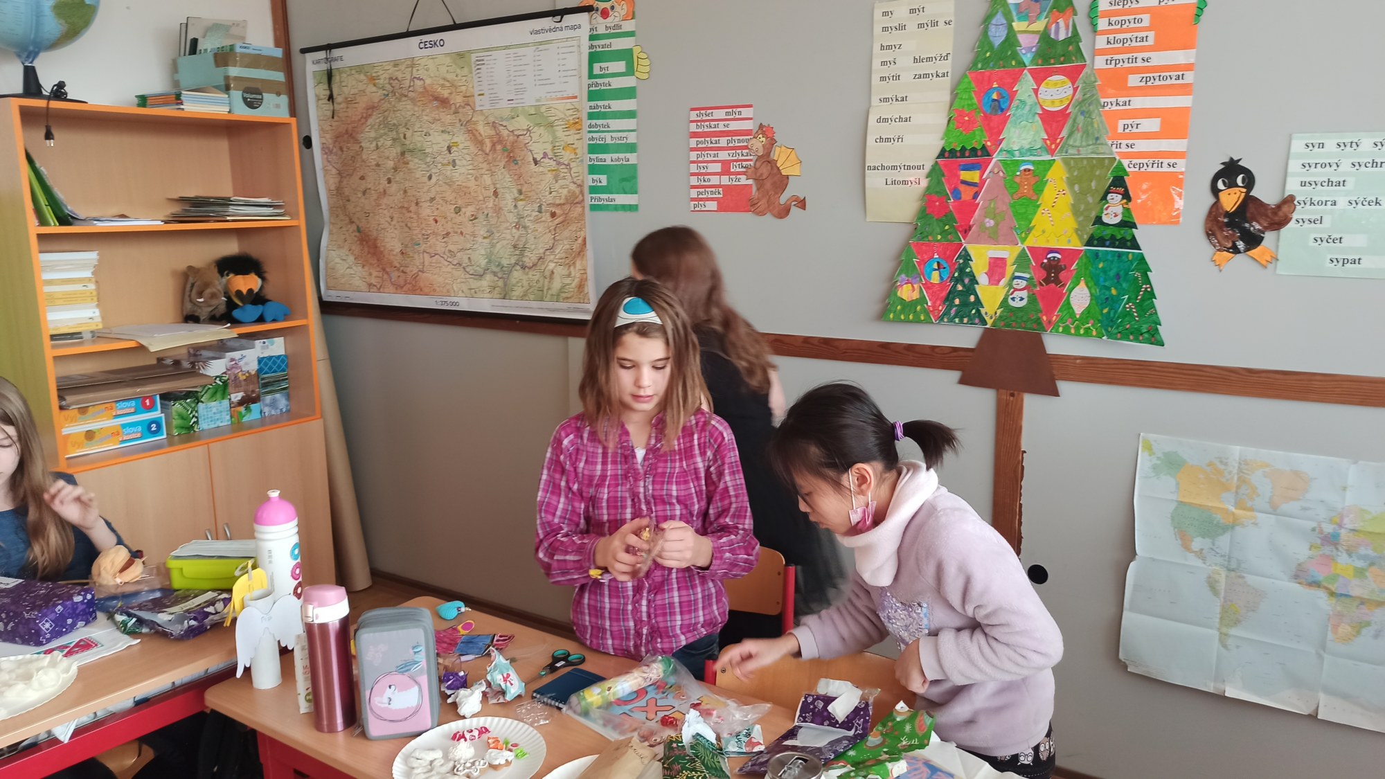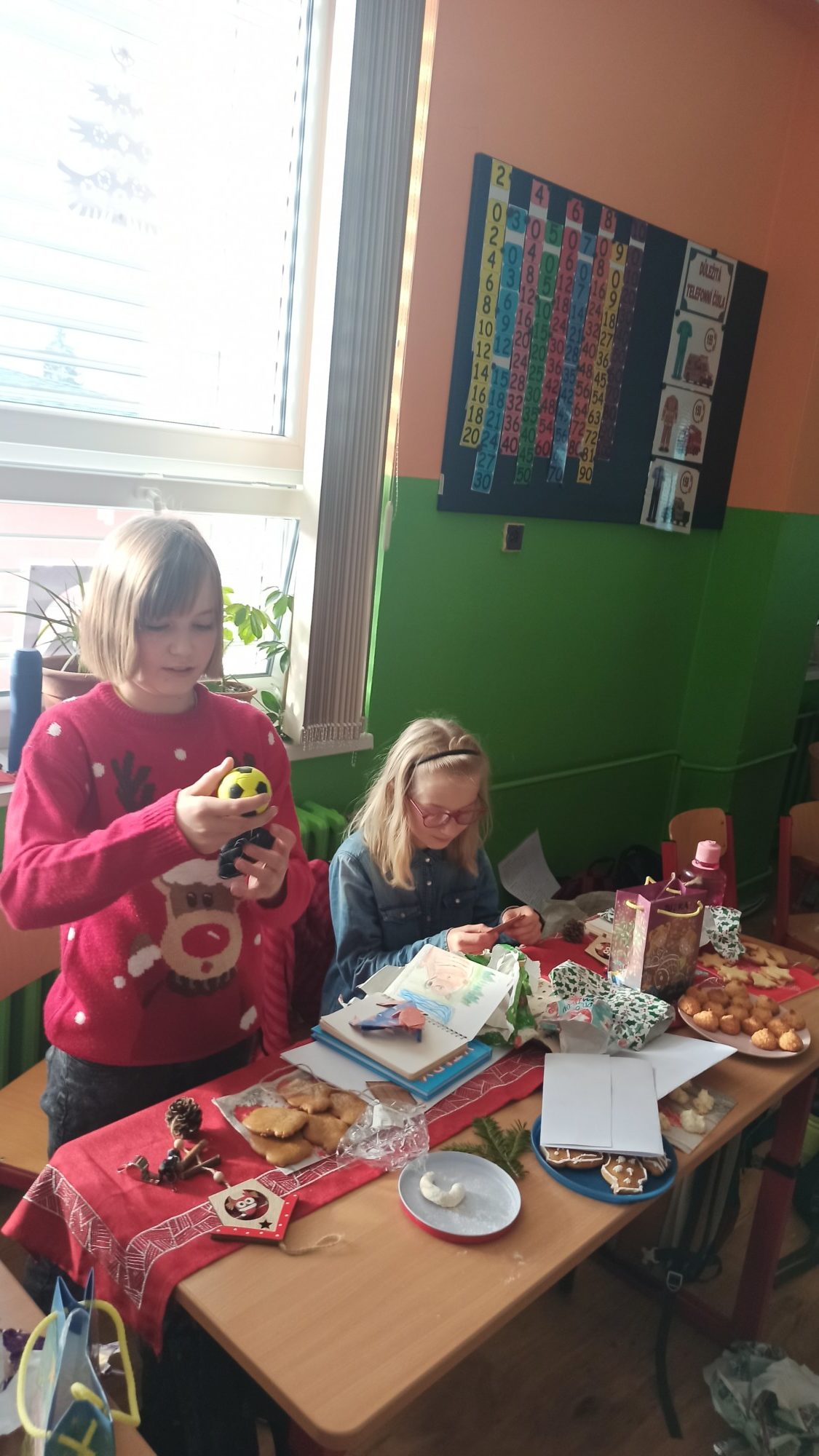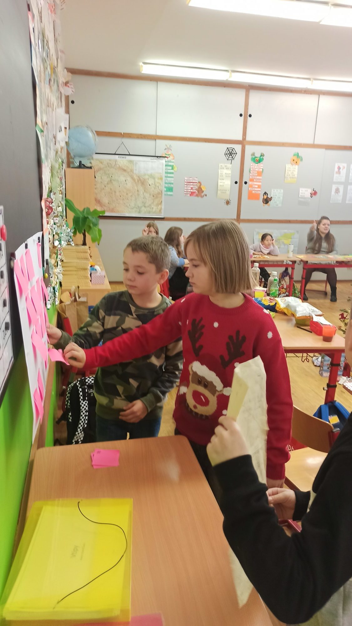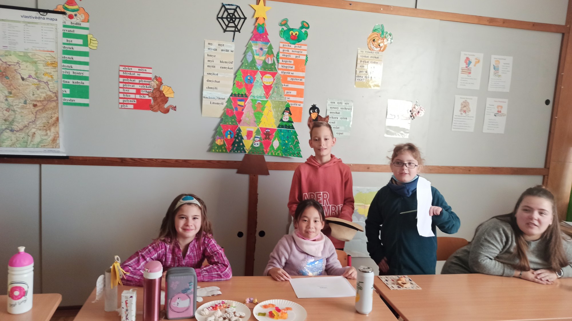 Poslední školní den v roce 2021 jsme si s dětmi náležitě užili. Proběhlo zpívání koled ( dokonce i s ukázkou ve znakové řeči, které se věnuje naše paní asistentka) i připomenutí vánočních zvyků. Děti měly ve skupinkách připravené vánoční úkoly pro zbytek třídy. Proběhl AZ kvíz, vánoční šibenice, hádání z klobouku, zhlédnutí vlastnoručně natočeného filmu i vtipy s hádankami. Na závěr každý žák pronesl novoroční přání určené třídě. Potom jsme se již „ vrhli“ na rozbalování dárečků, které si děti navzájem nadělily.