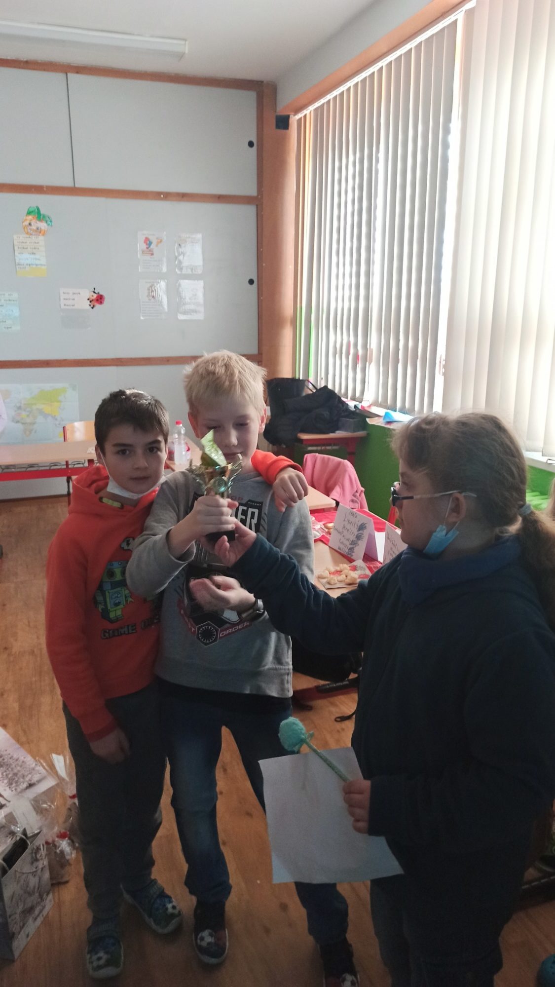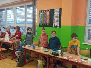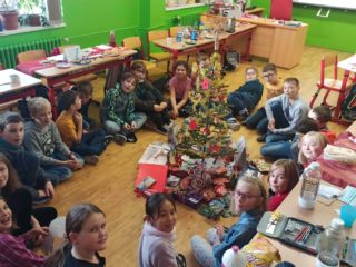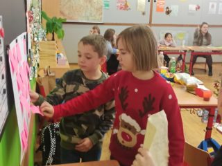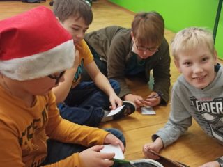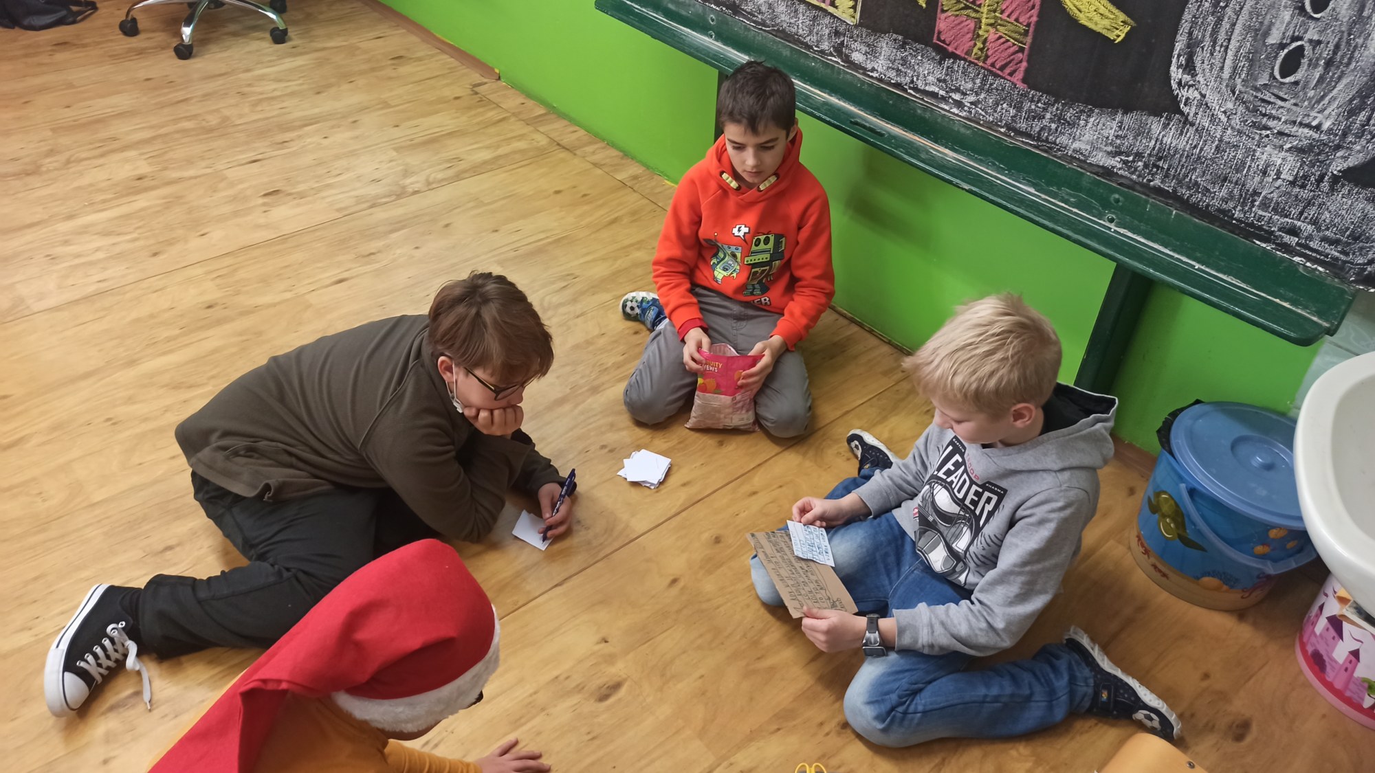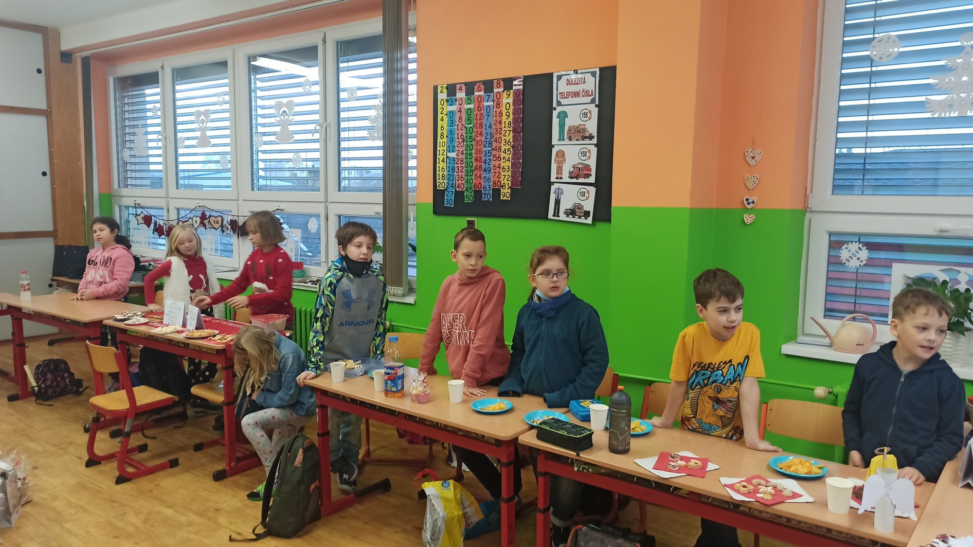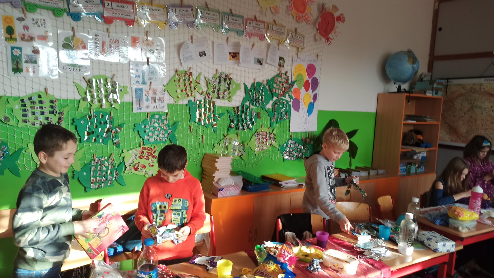 Poslední školní den v roce 2021 jsme si s dětmi náležitě užili. Proběhlo zpívání koled ( dokonce i s ukázkou ve znakové řeči, které se věnuje naše paní asistentka) i připomenutí vánočních zvyků. Děti měly ve skupinkách připravené vánoční úkoly pro zbytek třídy. Proběhl AZ kvíz, vánoční šibenice, hádání z klobouku, zhlédnutí vlastnoručně natočeného filmu i vtipy s hádankami. Na závěr každý žák pronesl novoroční přání určené třídě. Potom jsme se již „ vrhli“ na rozbalování dárečků, které si děti navzájem nadělily.
