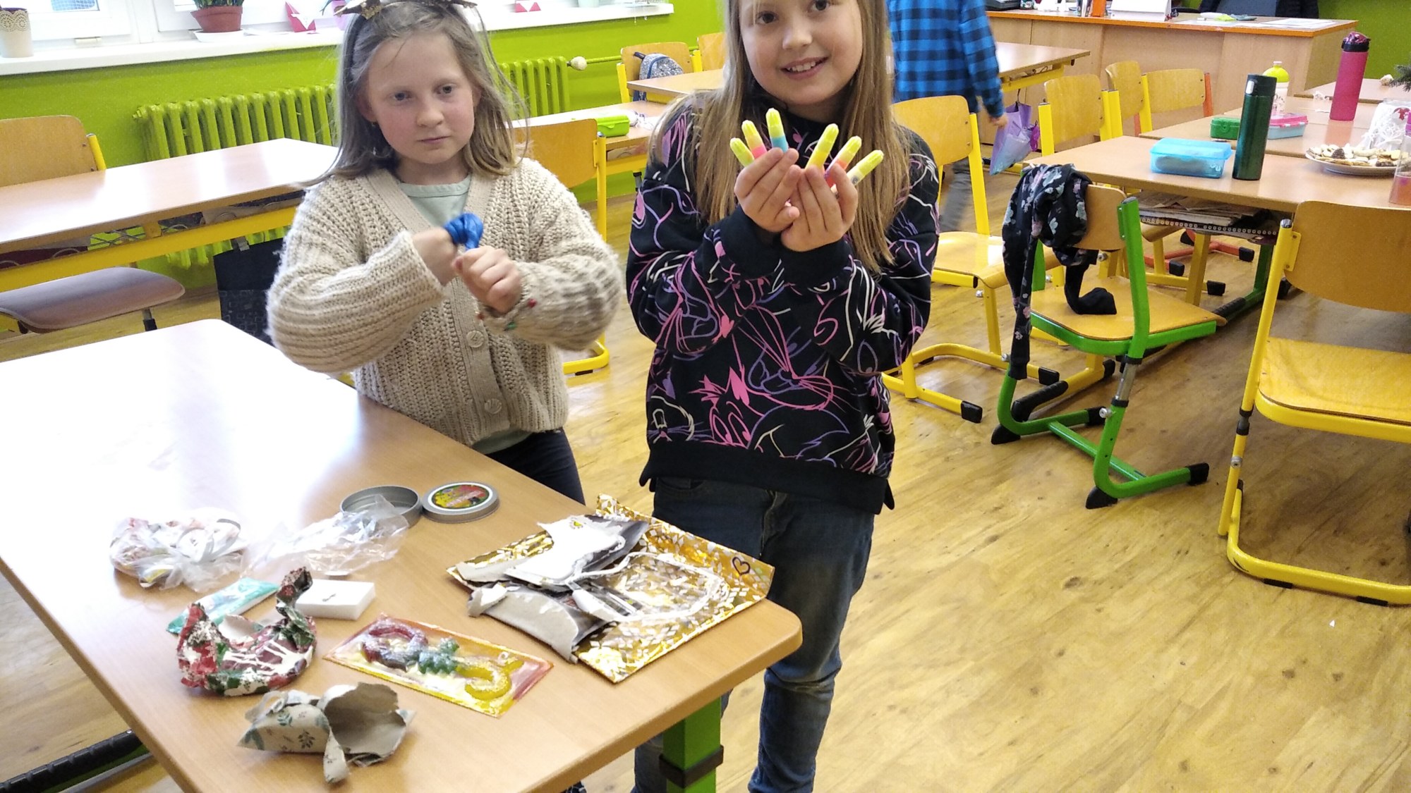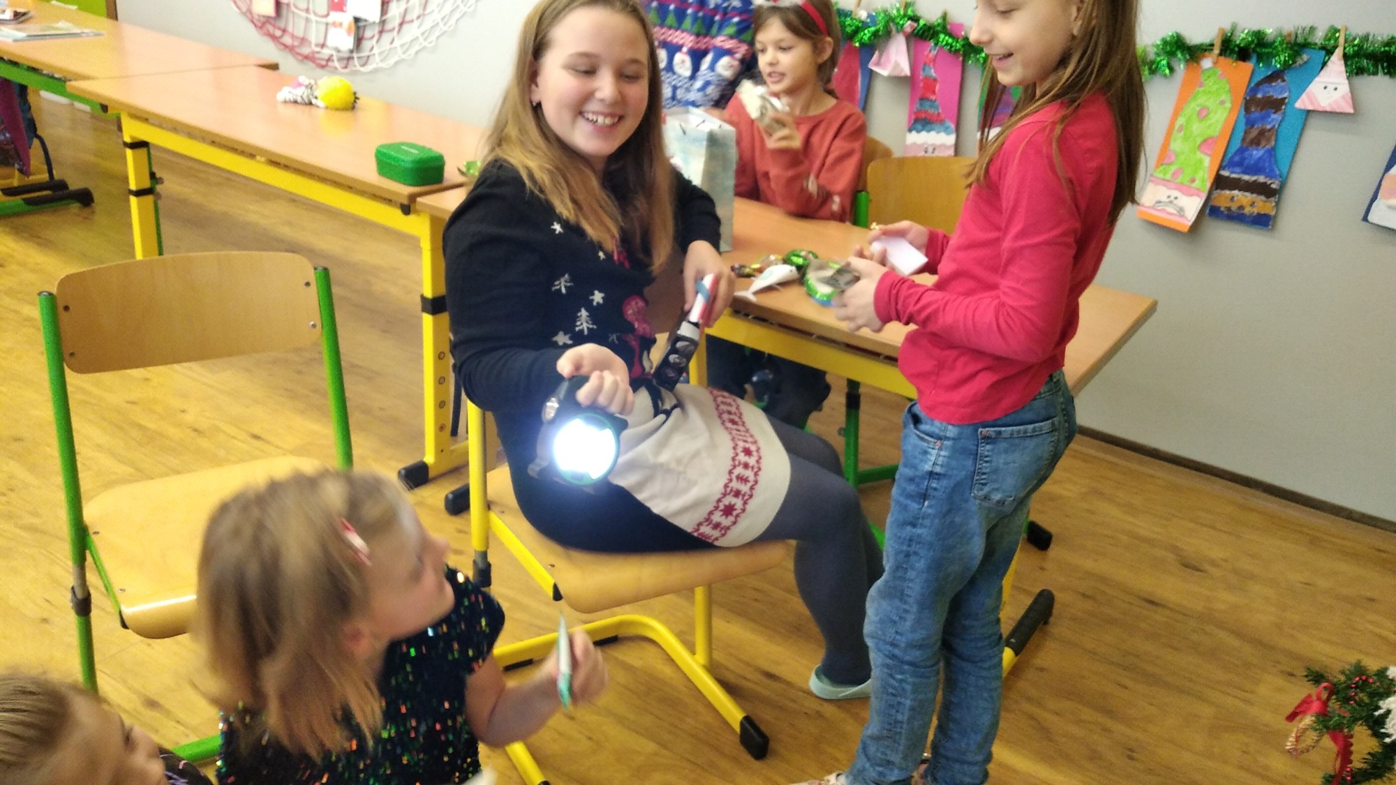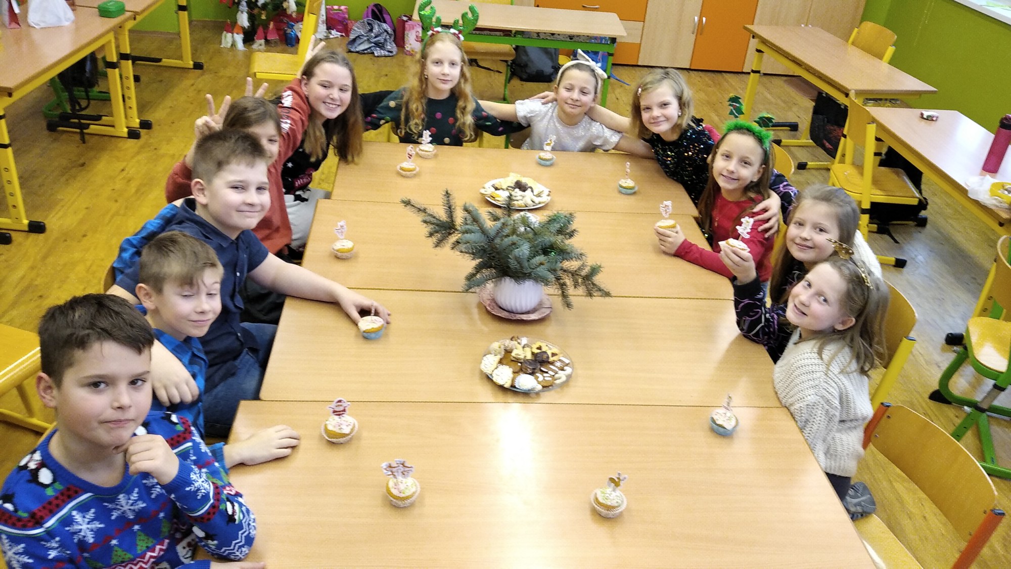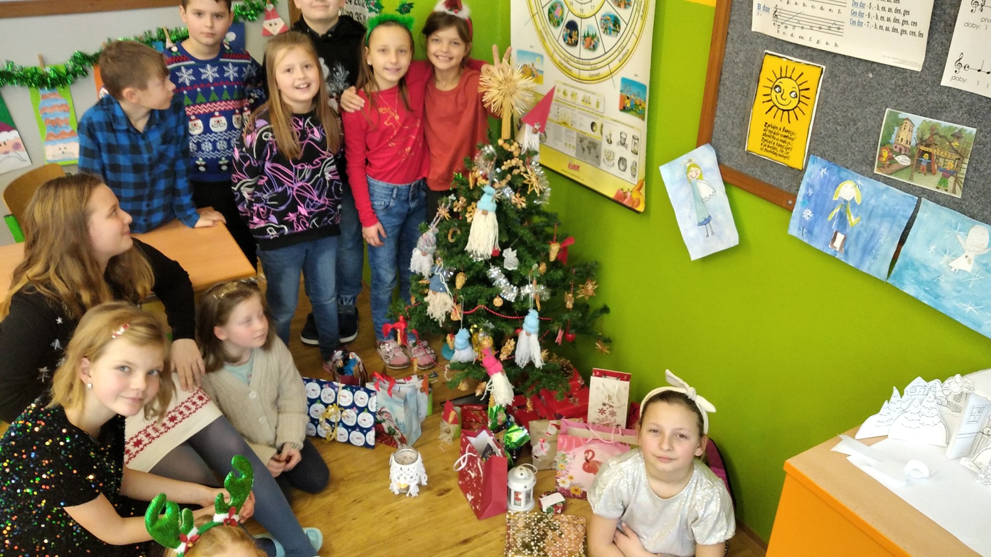 Ve čtvrtek 22.prosince se žáci 4.B těšili hlavně na rozdávání dárečků a povídání o Vánocích. Nejdříve jsme společně svačili výborné cupcakes od Matouška. Moc za ně děkujeme. Pak jsme společně určovali podle melodie názvy vánočních písniček, které jsme si také zazpívali. Rozbalování vánočních dárků všechny děti moc potěšilo. Na závěr si žáci vyrobili hezké vánoční přání a společně jsme si popřáli krásné Vánoce.