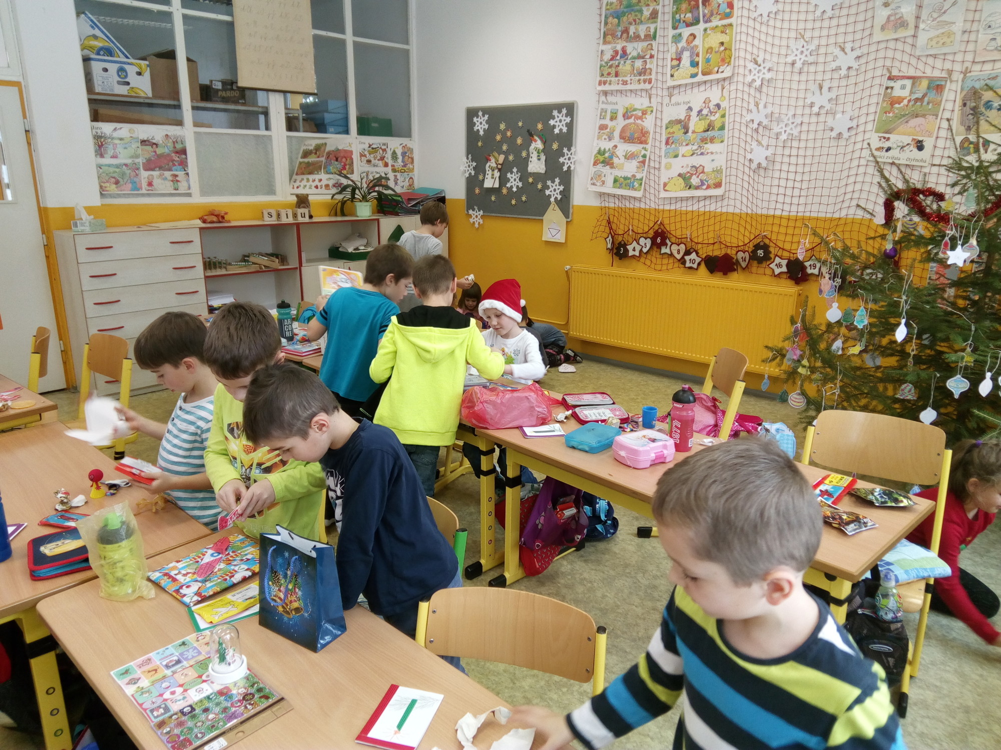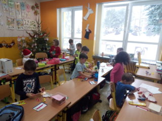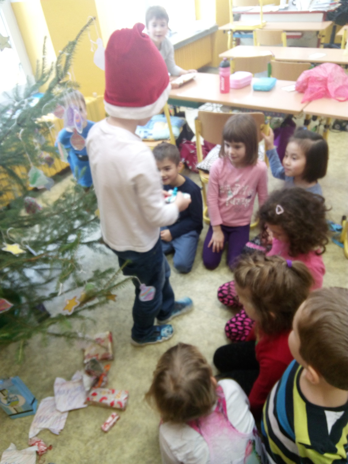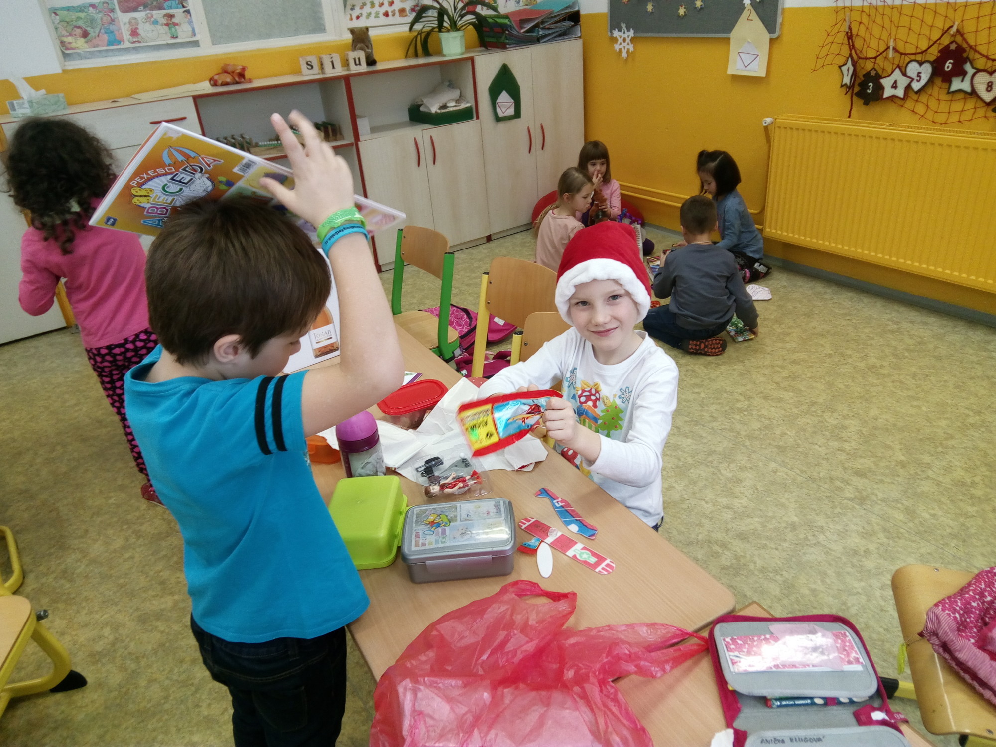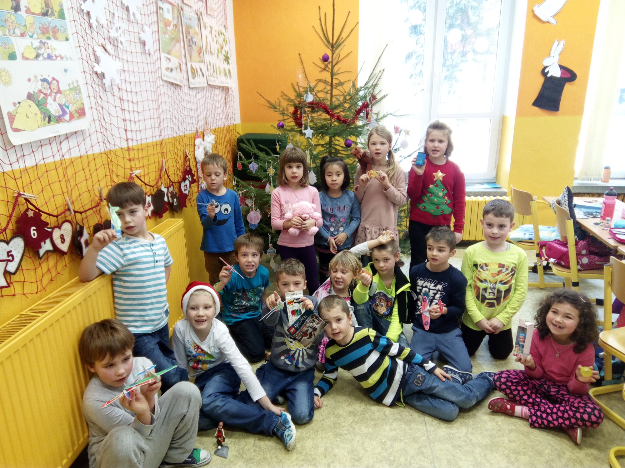 Po zpívání u stromečku a společné pohádce“ Putování do Betléma“ jsme se s dětmi přesunuli do třídy, kde jsme si zopakovali vánoční zvyky a tradice, zazpívali koledy a potom přišlo na nadělování dárečků. Malými drobnostmi si děti udělaly radost, než jim Ježíšek splní jejich tajná přání. Ochutnali jsme také cukroví od maminek. U zapálené prskavky si každý vyslovil přání, co by popřál své rodině. Vše se neslo