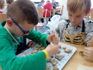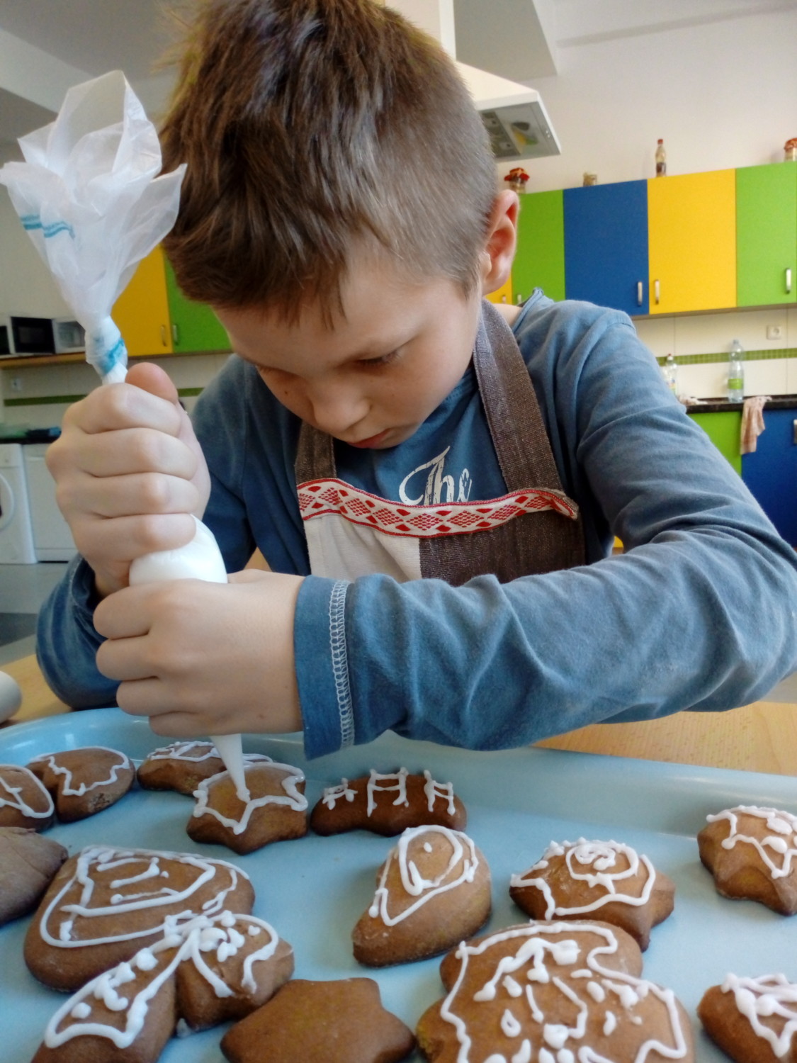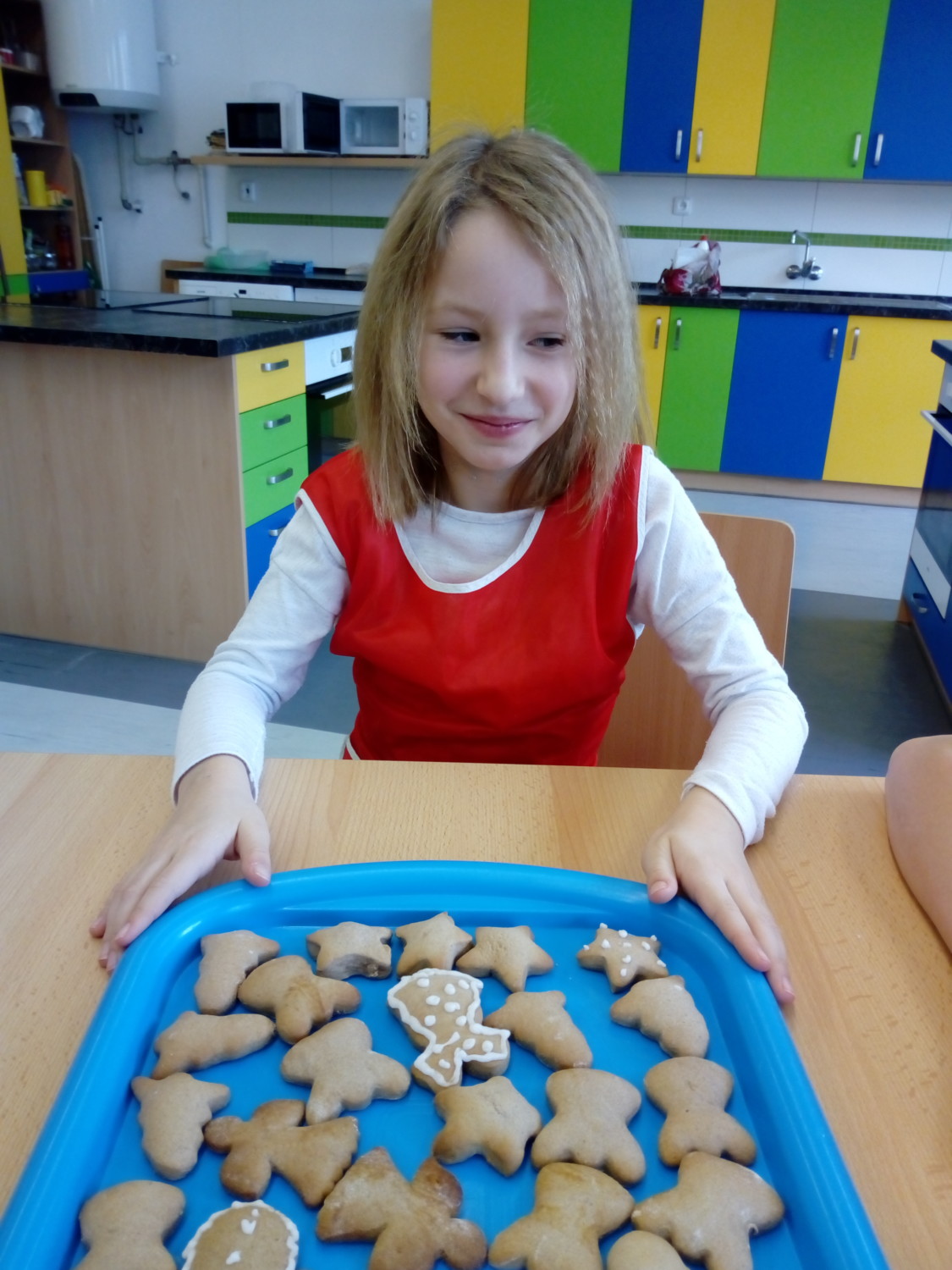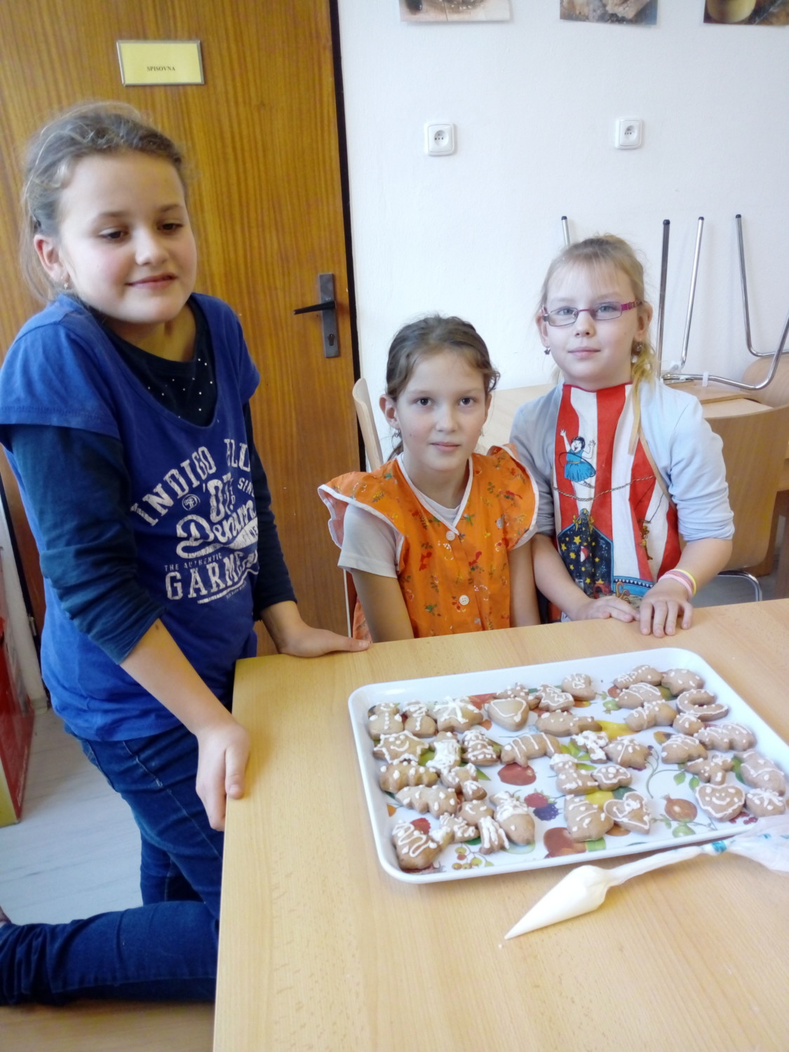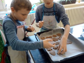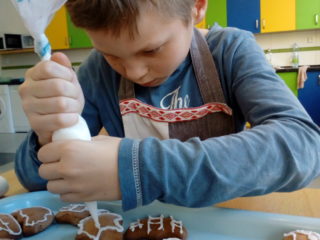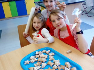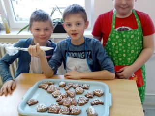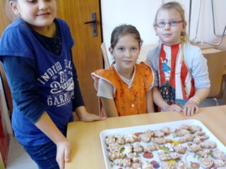 Koření badyán, skořice i hřebíček provoněly jednou odpoledne školu. Bylo to tehdy, kdy děti ze 3. A peklyvánoční perníčky v kuchyňce. Nejdříve musely vyválet těsto, vykrojit tvary, upéct a nakonec ozdobit bílkovou polevou. Nejlepší odměnou za jejich snažení bylo, když se mohly zakousnout do prvního hotového perníčku. Mňam.
