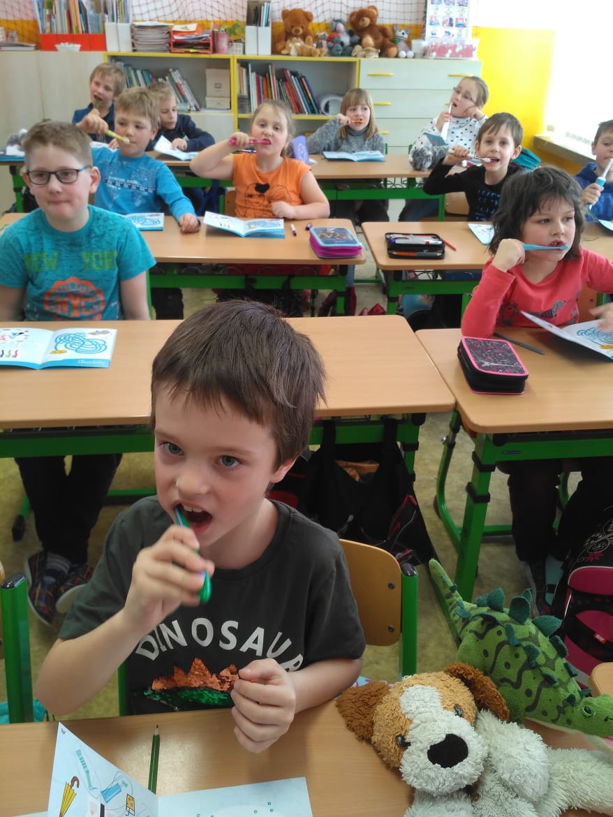 Obě první třídy naší školy se zapojily do preventivního programu Veselé zoubky společnosti dm drogerie market s.r.o. Prostřednictvím zábavně vzdělávacího filmu „Jak se dostat Hurvínkovi na zoubek“ se děti seznámily se správnou péčí o zoubky. Své znalosti si ověřily při vyplňování pracovního sešitu a také při plnění úkolů na interaktivní tabuli.