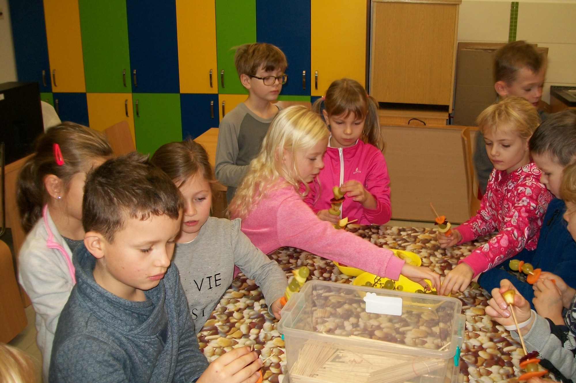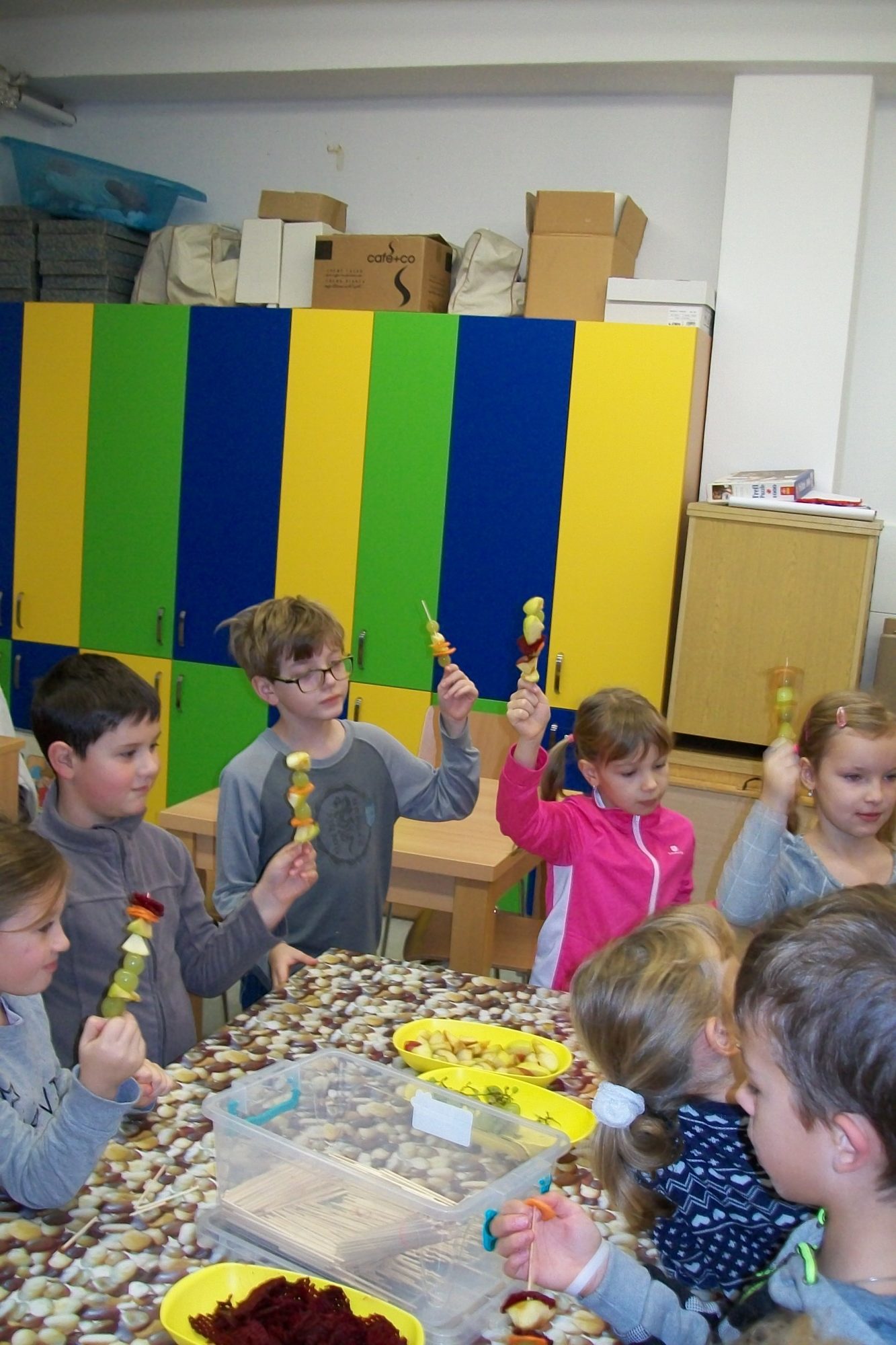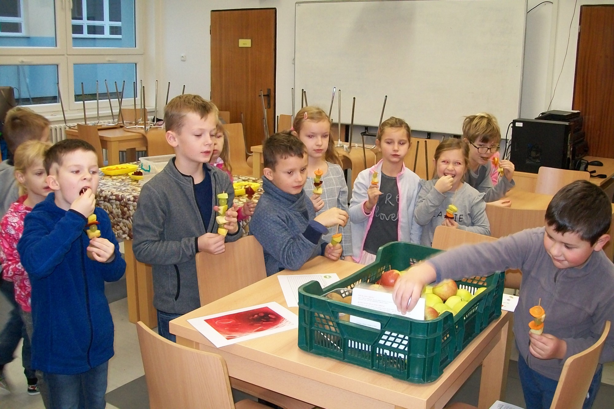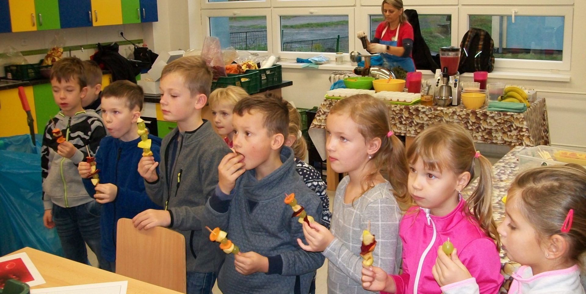 Firma, která zásobuje naši školu ovocem a zeleninou pro žáky v rámci projektu Ovoce do škol, nás pozvala na akci s názvem Vitamínový den. My jsme si ji přejmenovali na „vitamínovou hodinku“. V rámci této hodiny se žáci dozvěděli spoustu zajímavých věcí o zdravém životním stylu, ochutnali čerstvě vymačkané šťávy a smoothie, vytvořili si ovocnozeleninové špízy a v soutěži mohli vyhrát spoustu zajímavých cen. Akce se všem moc líbila. Za žáky 1.A Z. Marková