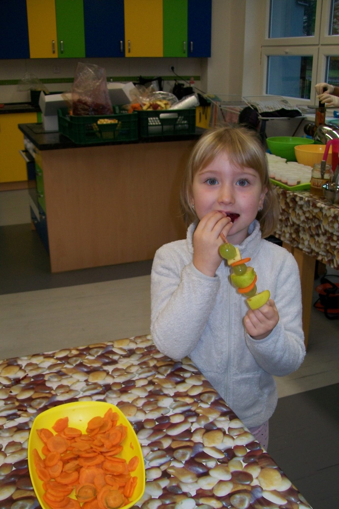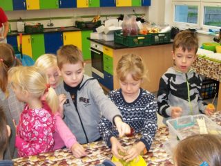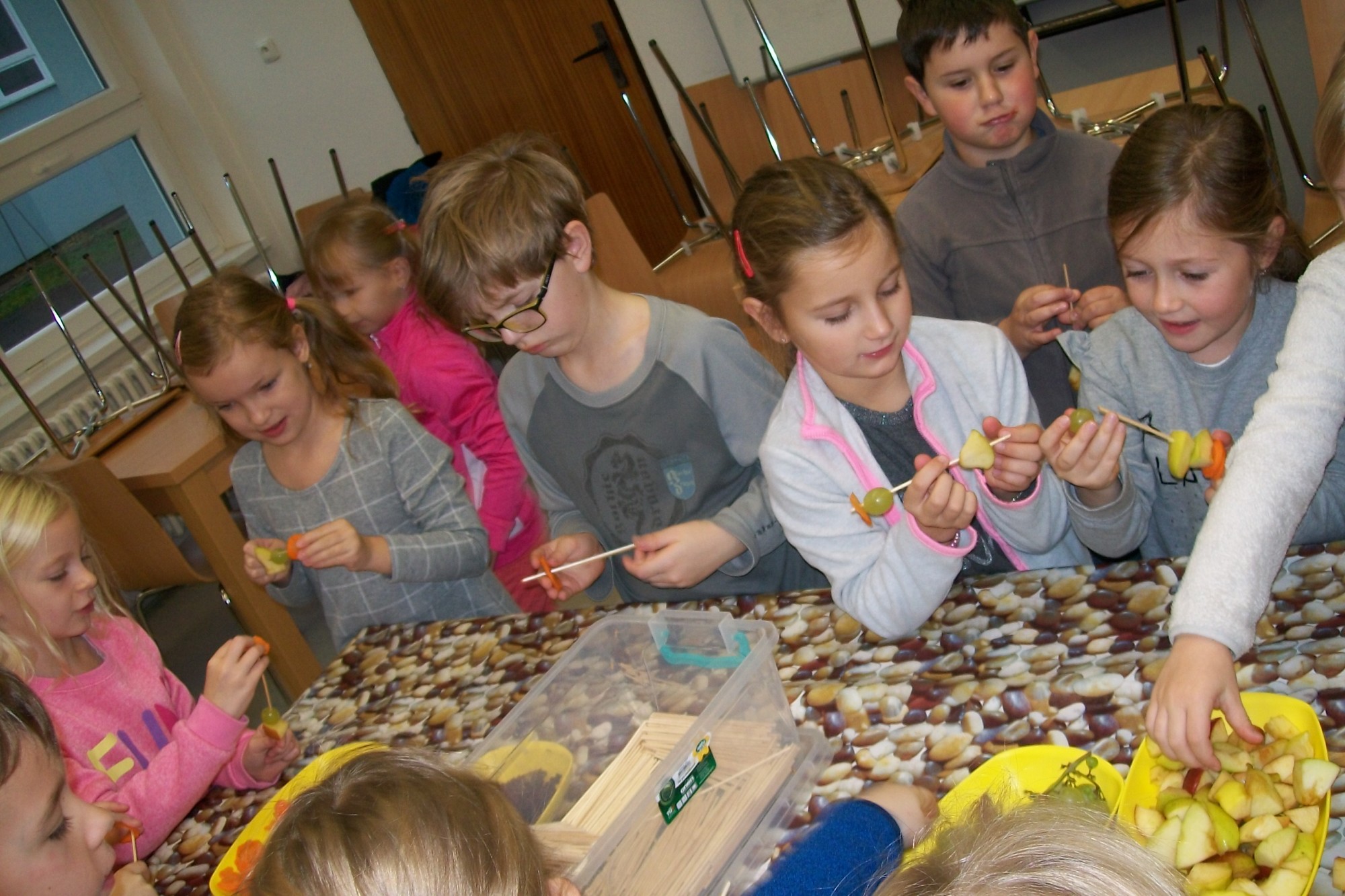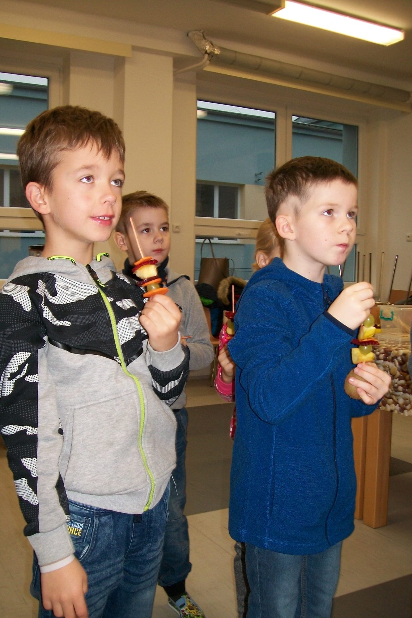 Firma, která zásobuje naši školu ovocem a zeleninou pro žáky v rámci projektu Ovoce do škol, nás pozvala na akci s názvem Vitamínový den. My jsme si ji přejmenovali na „vitamínovou hodinku“. V rámci této hodiny se žáci dozvěděli spoustu zajímavých věcí o zdravém životním stylu, ochutnali čerstvě vymačkané šťávy a smoothie, vytvořili si ovocnozeleninové špízy a v soutěži mohli vyhrát spoustu zajímavých cen. Akce se všem moc líbila. Za žáky 1.A Z. Marková
