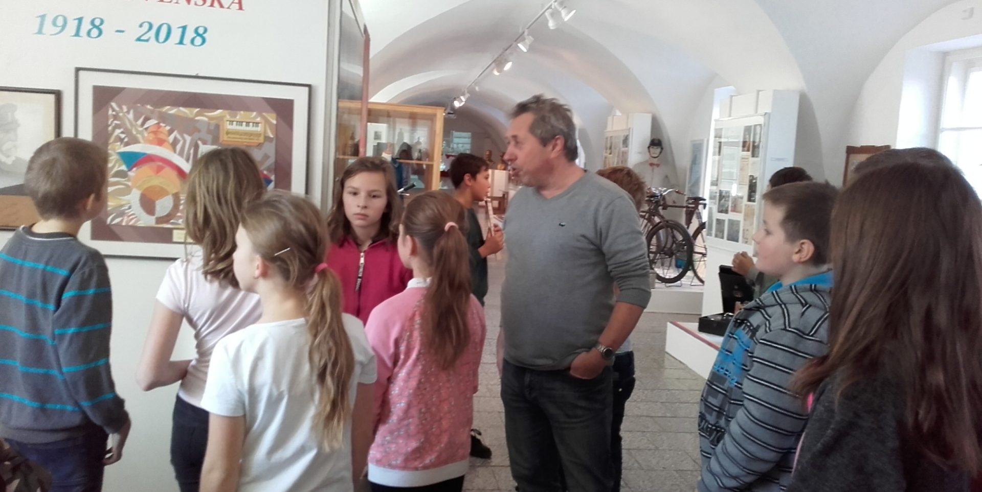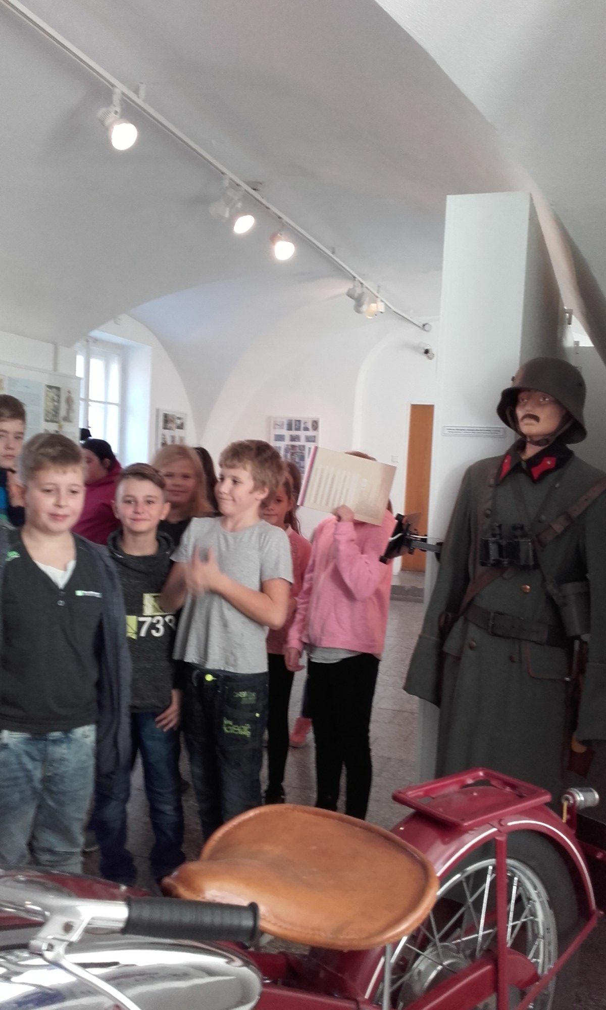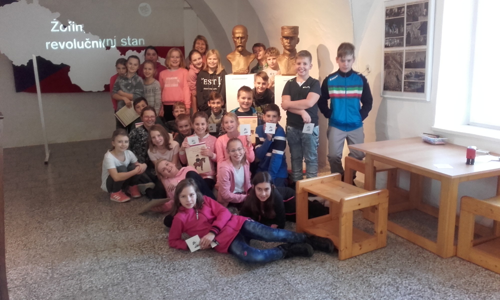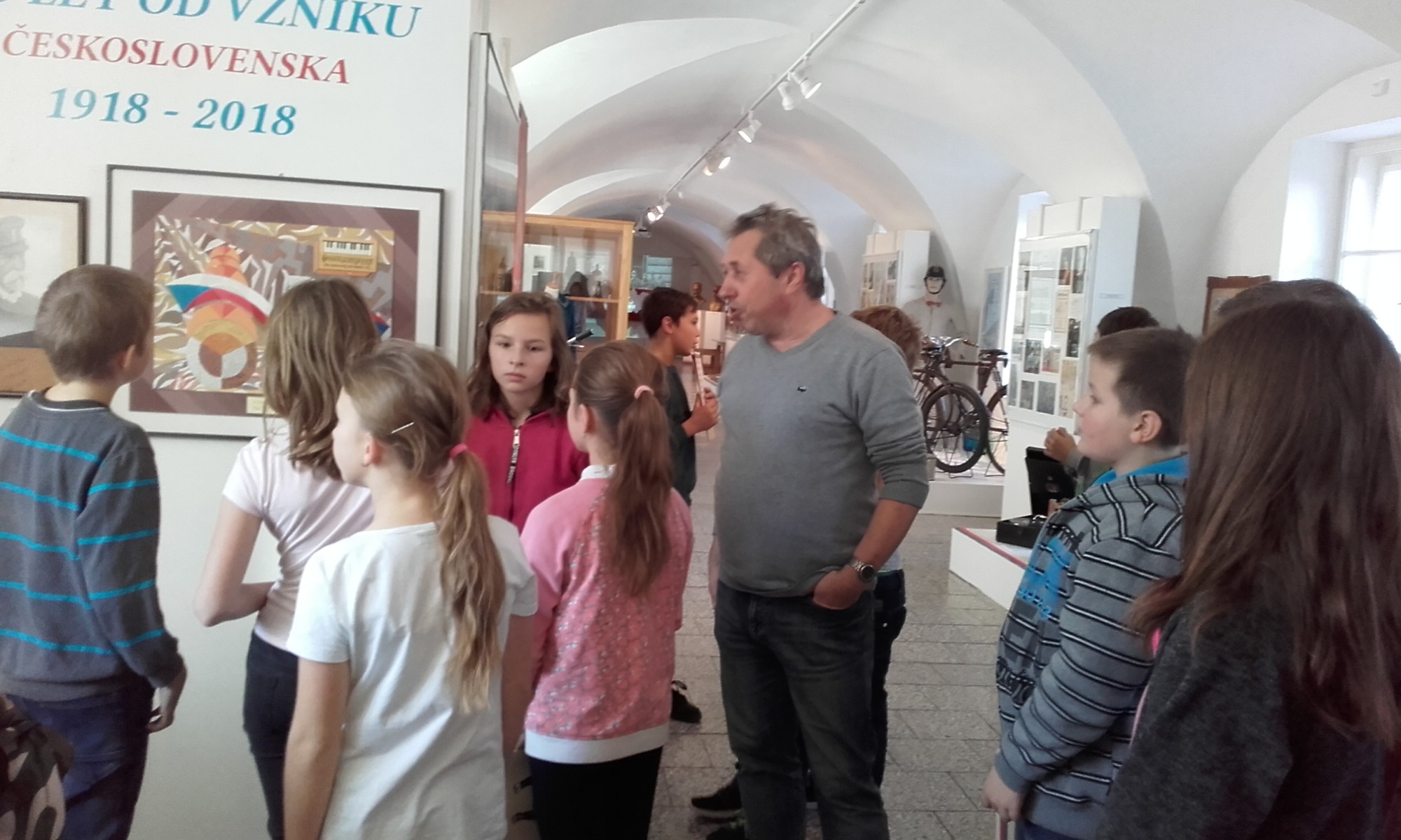 Naše třída 5. B navštívila v pátek 16. 11. výstavu k 100. výročí Československé republiky v lanškrounském muzeu. Žáky nejvíce zaujala motorka Jawa 250 ccm, starodávná kola, od firmy WILLY KATZER z Lanškrouna, vojenský kufr legionáře Ježka, uniformy vojáků, sokolské kroje a sokolské cvičební úbory.