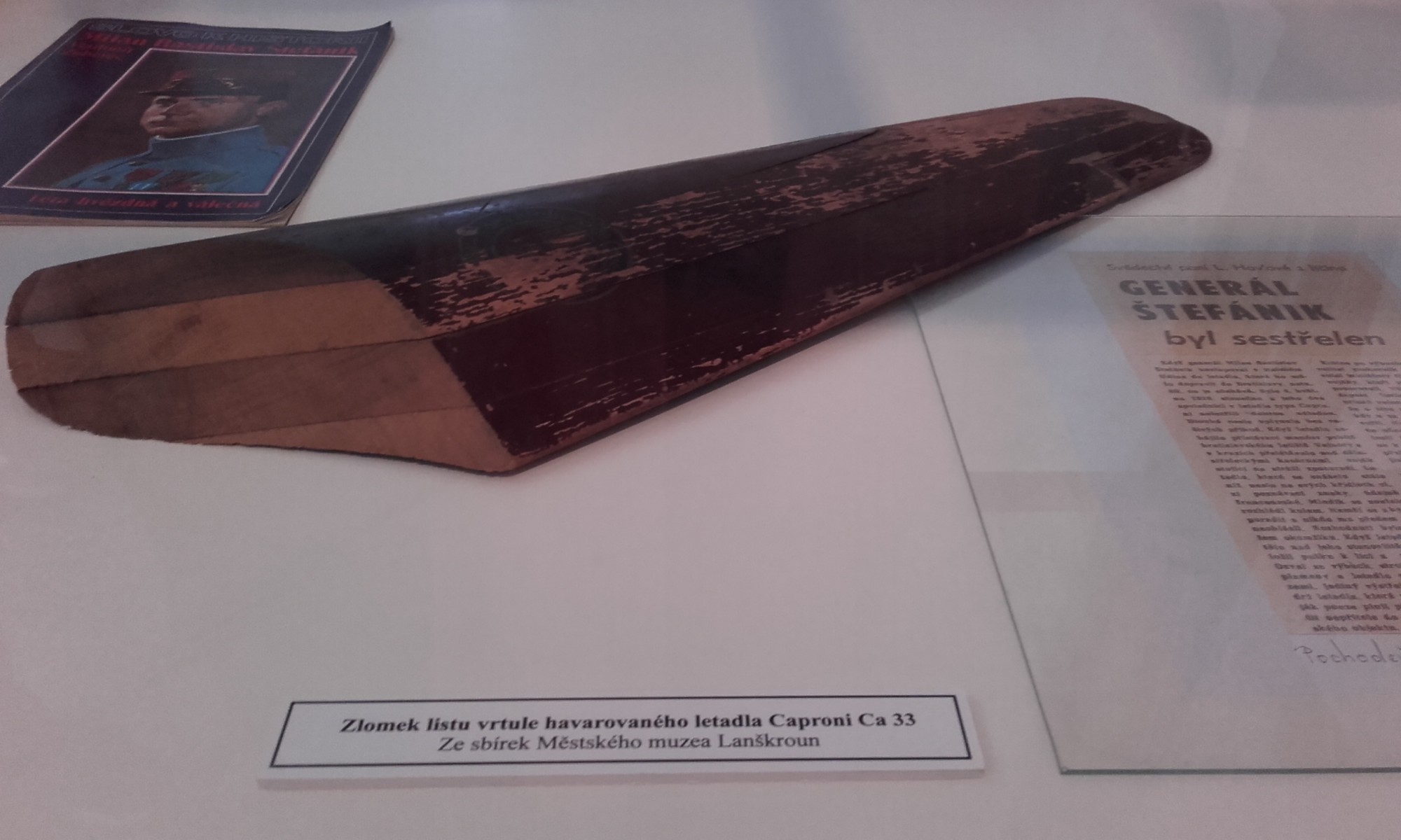 Dozvěděli jsme se také, že lanškrounské muzeum vlastní část zlomku listu vrtule havarovaného letadla, ve kterém zahynul Milan Rostislav Štefánik. Byl prvním členem československé vlády a ministrem války. Československo do 2. světové války mělo nejvyspělejší armádu.