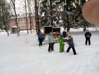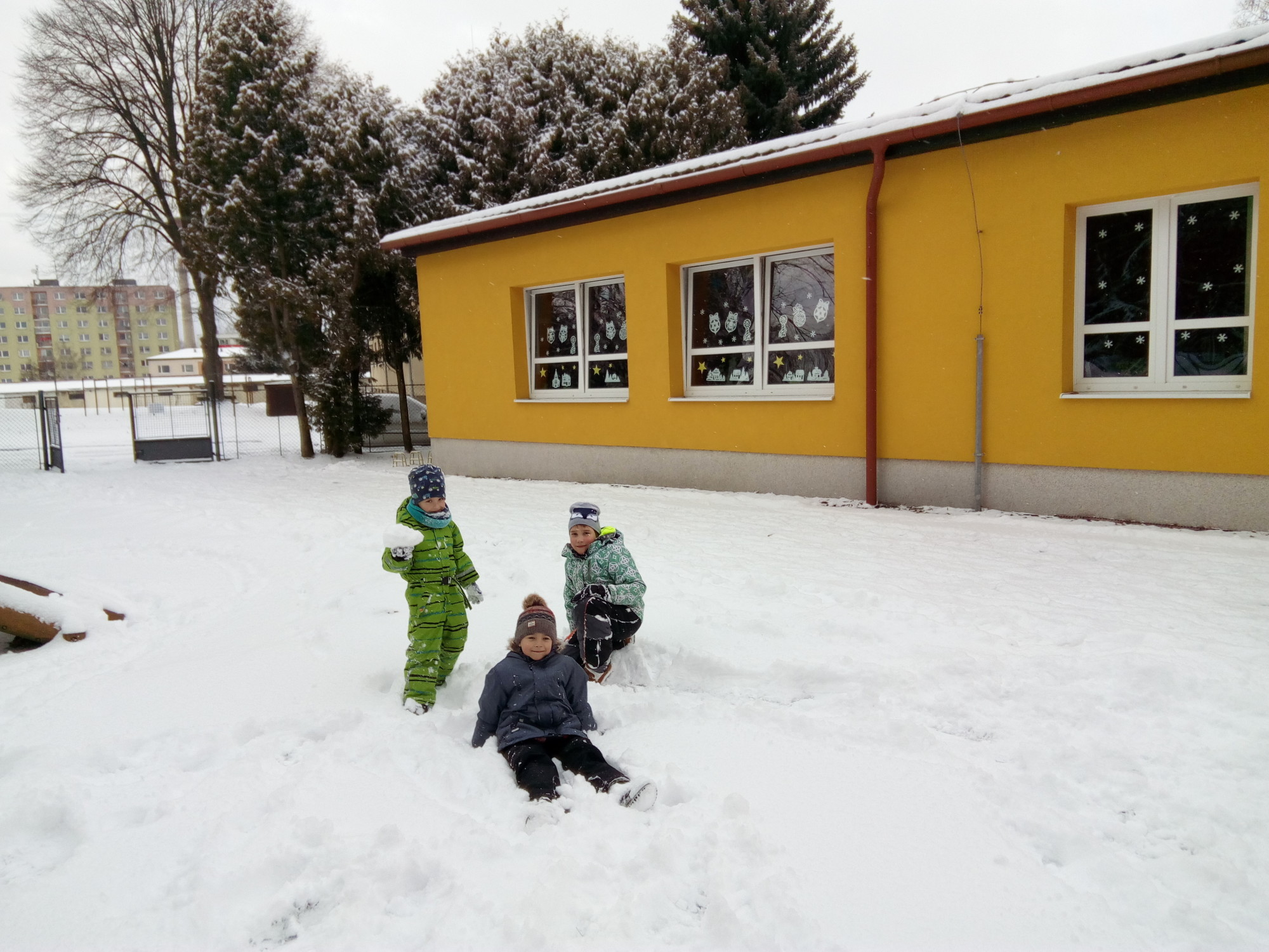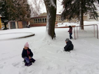 Děti s družinkou využily sněhové nadílky a vyrazily si užít čerstvě napadaného sněhu na školní zahradu. Na řadu přišla koulovačka, vytváření sněžných andělů, honička a další zábavné činnosti. Pohyb na čerstvém vzduchu všem po vánočních svátcích jenom prospěl.