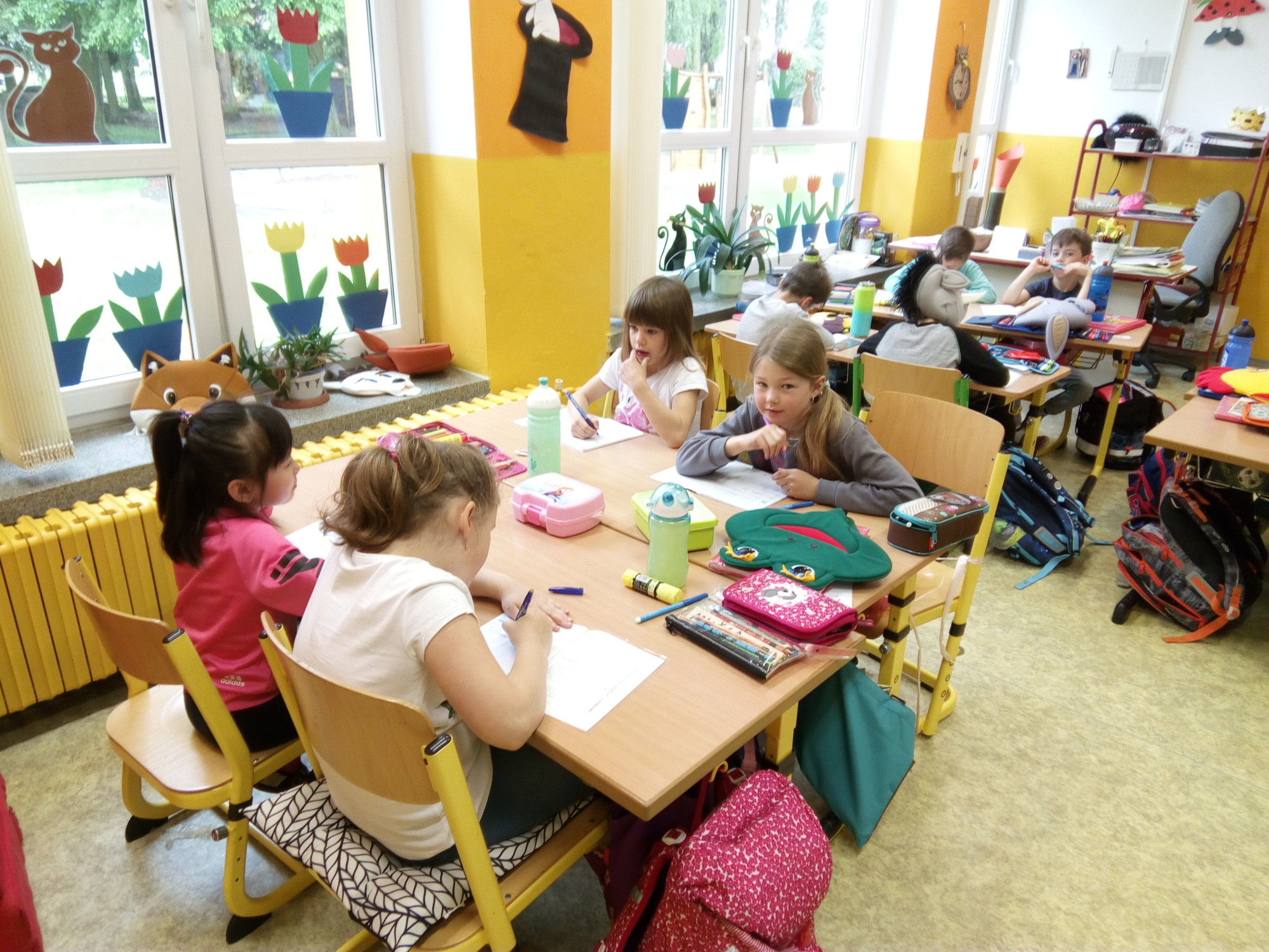 Dneší den 22.5. věnovali žáci 1.A opakování a prohlubování znalostí o zvířatech. Věnovali jsme se hlavně domácím zvířátkům, ale dostalo se i na lesní, či žijící u vody. Formou hádanek, písniček, zvuků i kreslení si děti upevňovaly své vědomosti. Pracovaly ve skupinkách